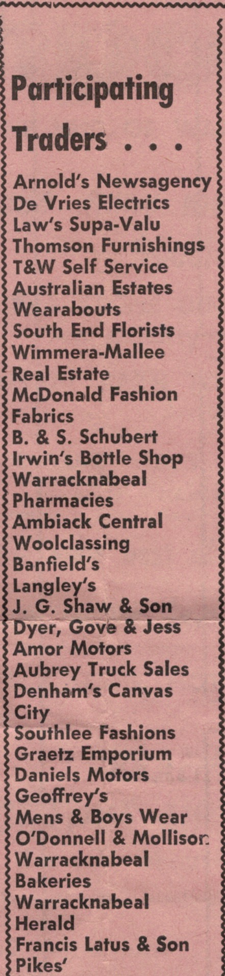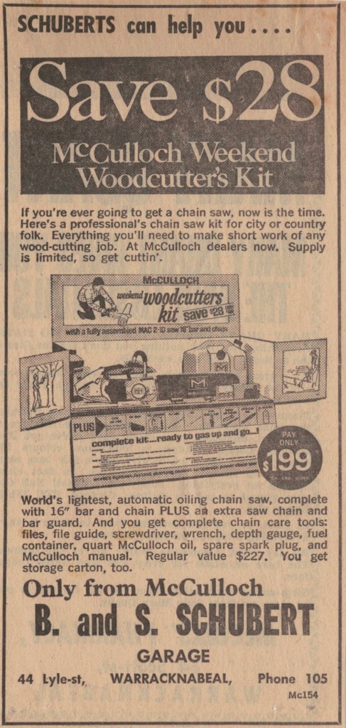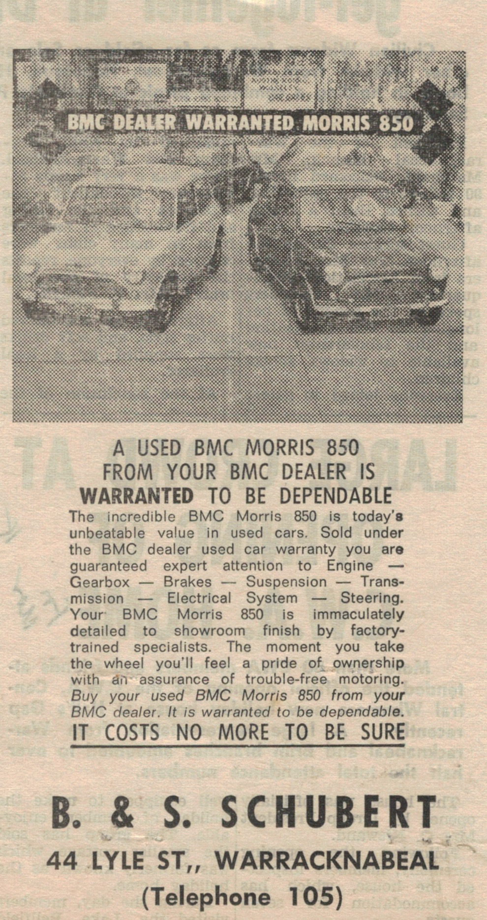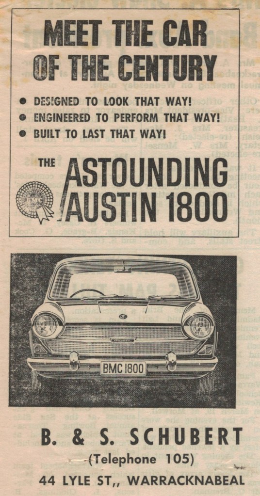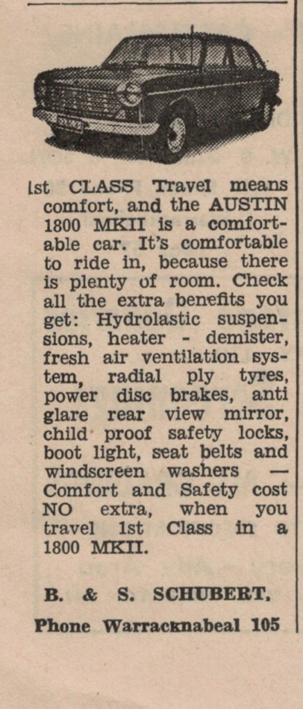 “Warracknabeal Herald”(Vic.), Friday 27 August 1965, page 6.