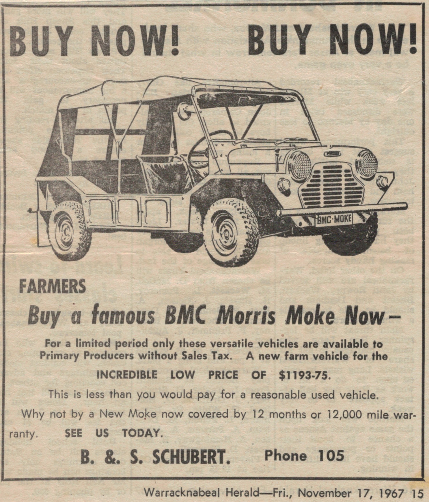 “Warracknabeal Herald” (Vic.), Friday 17 November 1967, page 15.