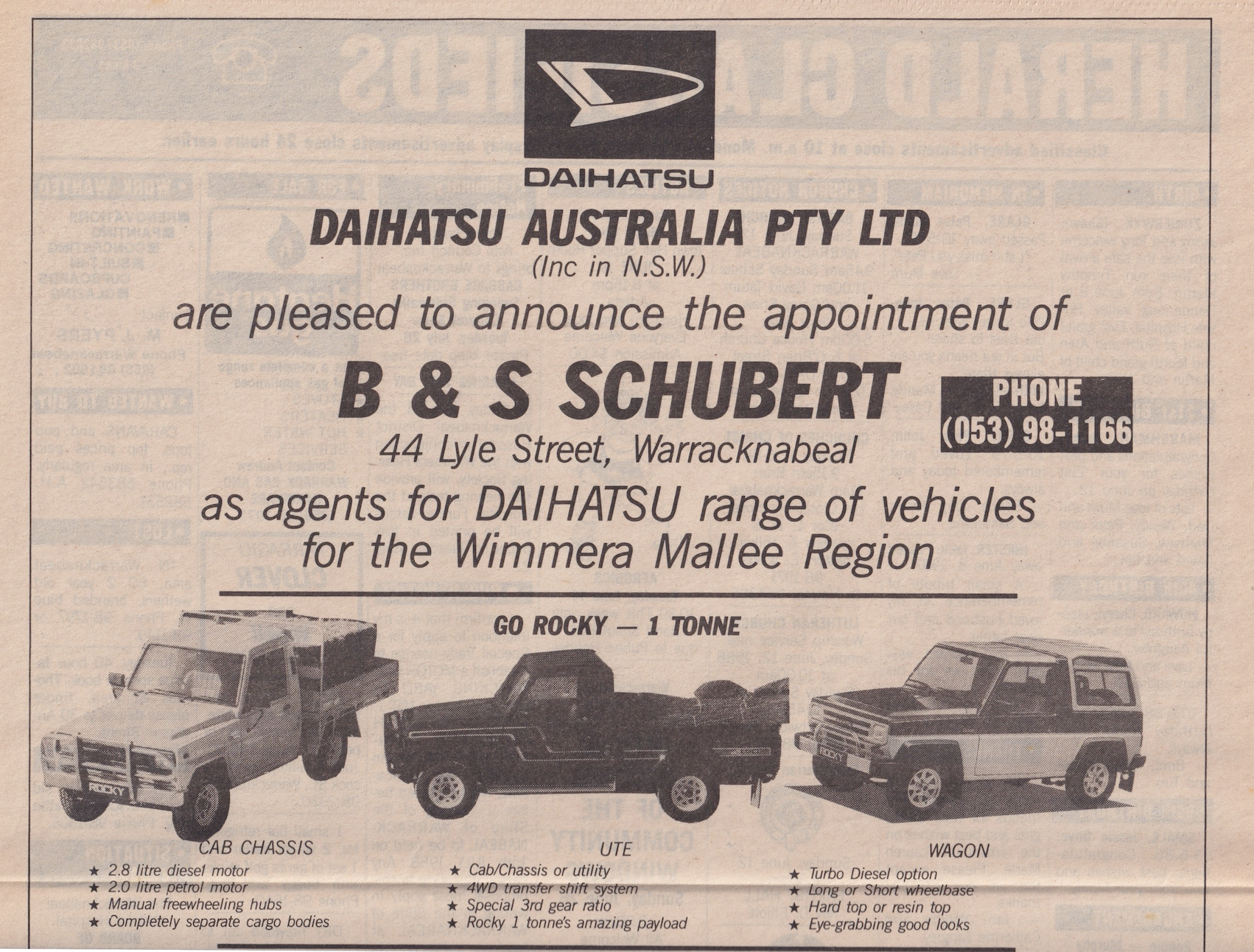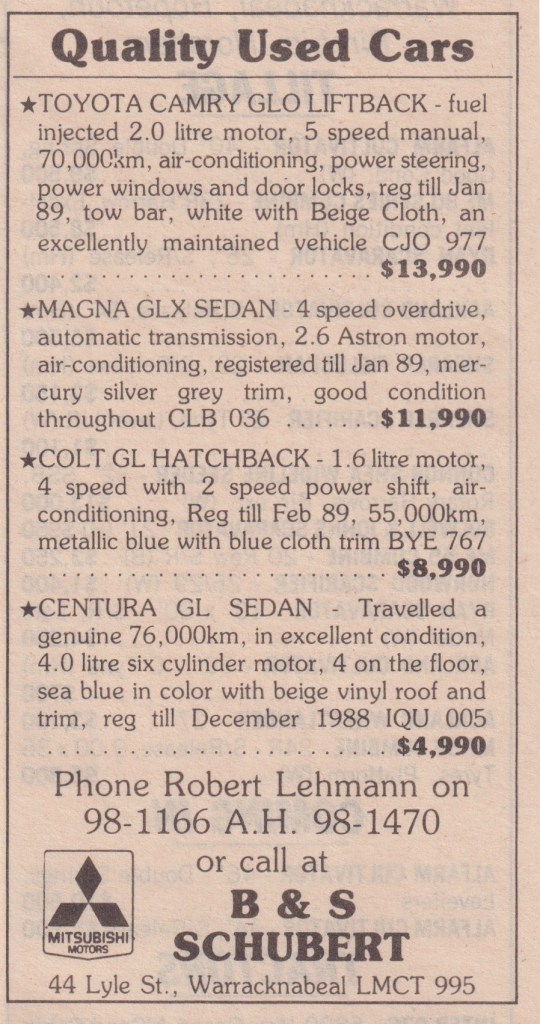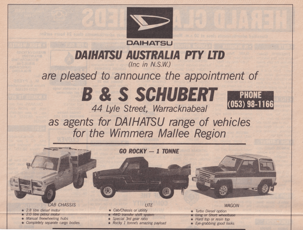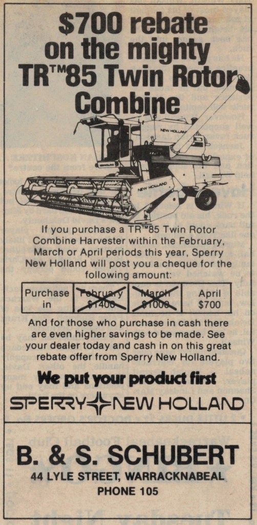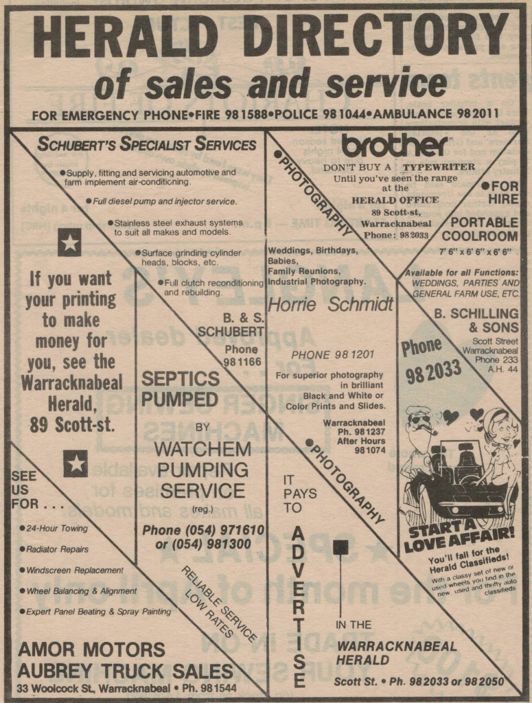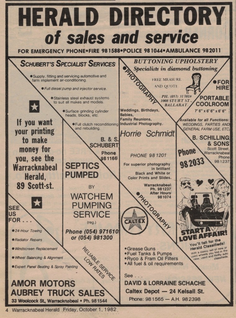 “Warracknabeal Herald” (Vic.), Friday 1 October 1982, page 8.