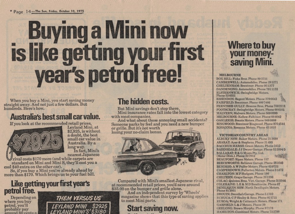 “Sun” (Melbourne, Vic.), Friday 10 October 1975, page 14.