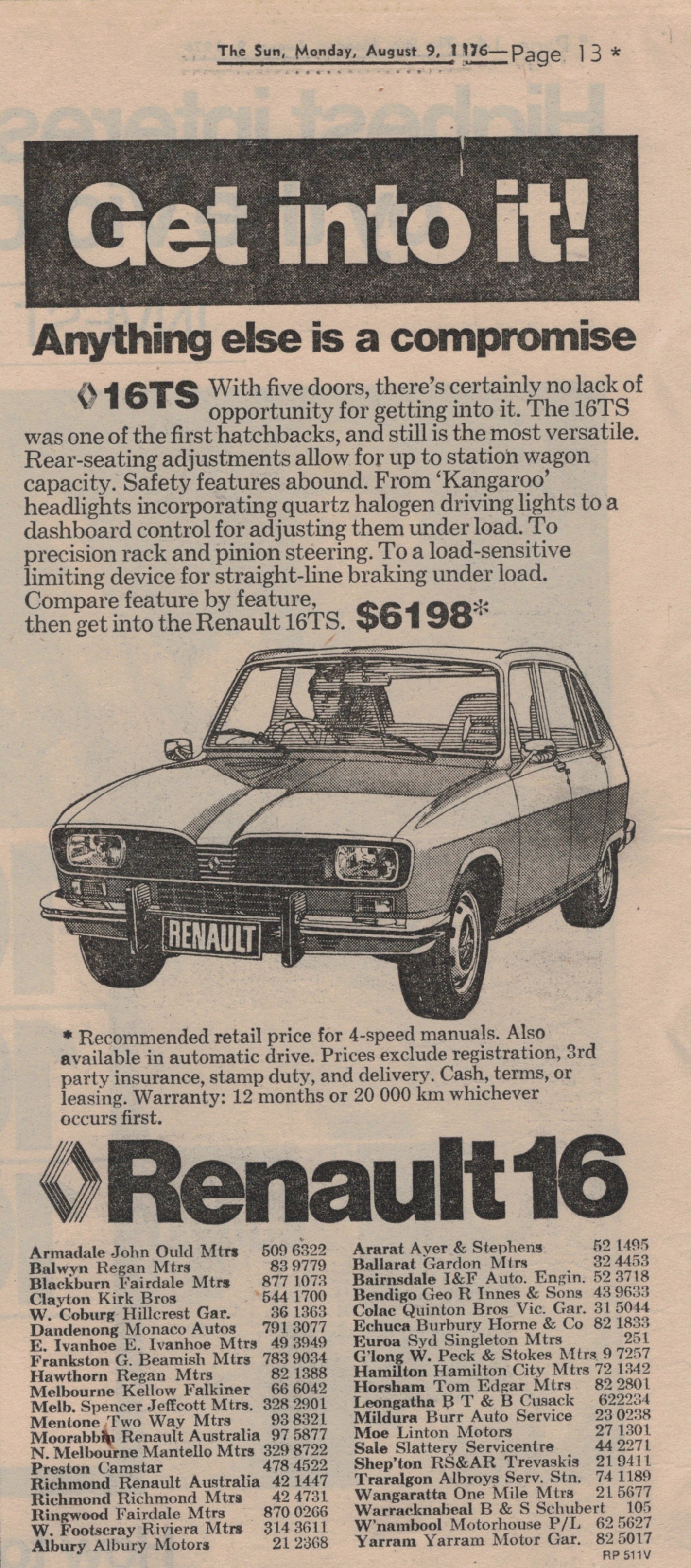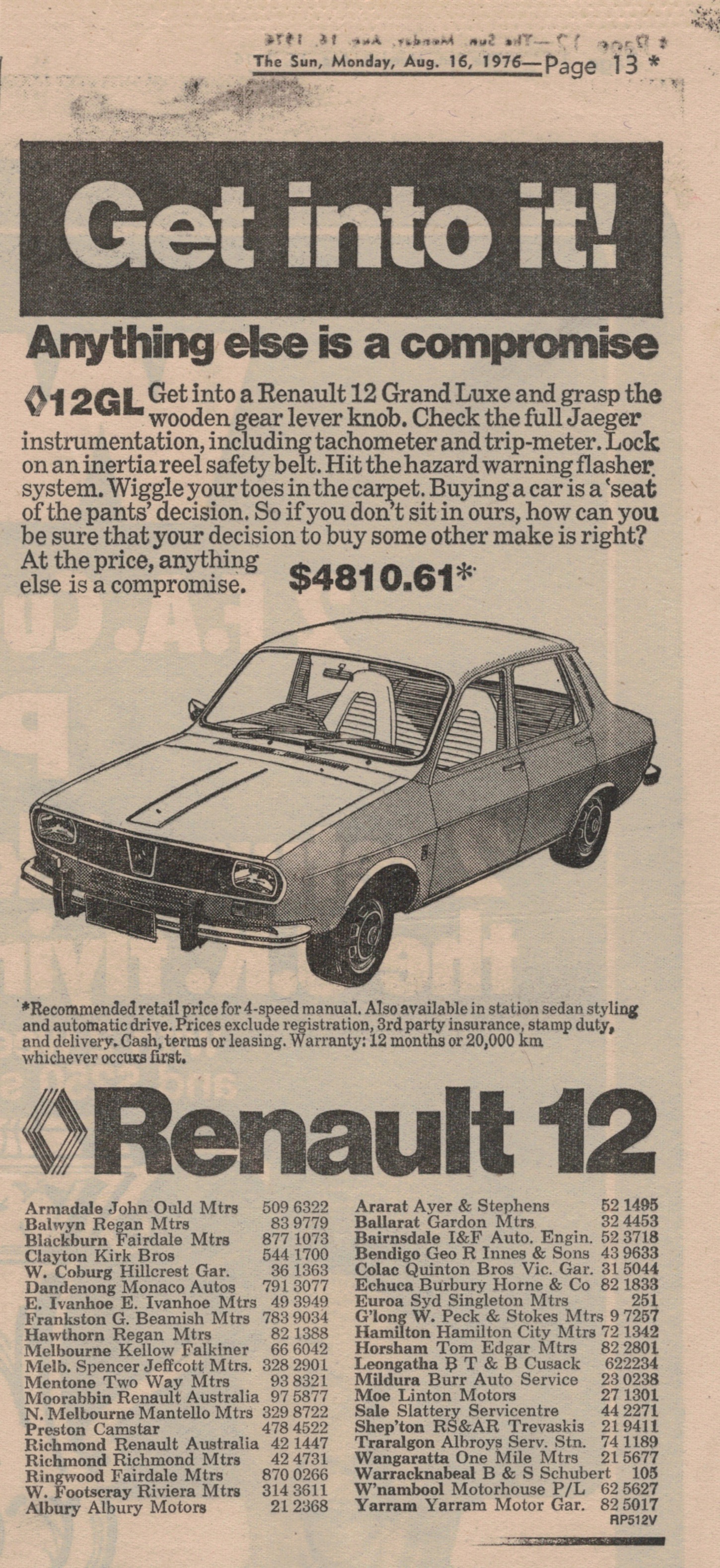 “Sun” (Melbourne, Vic.), Monday 16 August 1976, page 13.