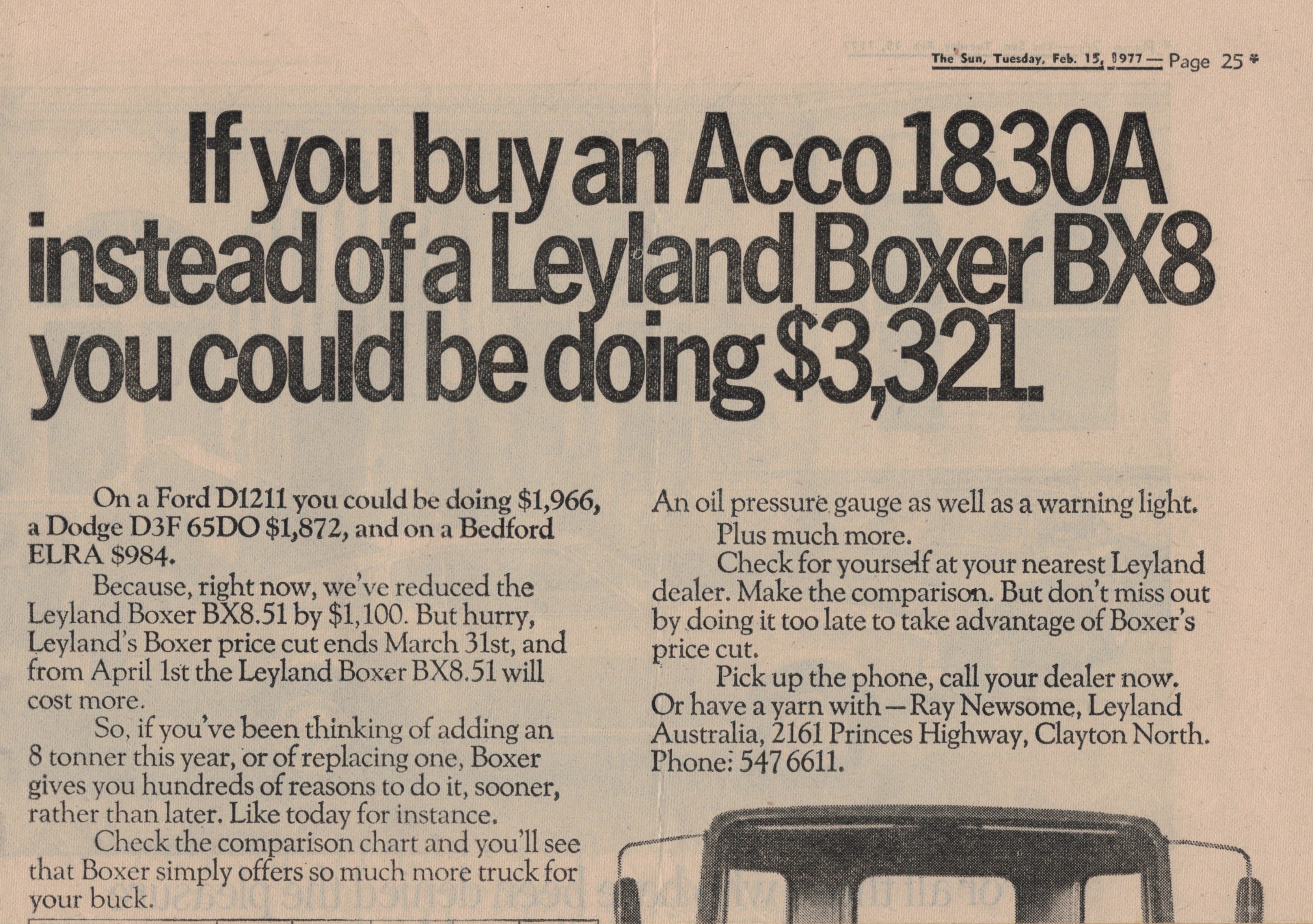 “Sun” (Melbourne, Vic.), Tuesday 15 February 1977, page 25.