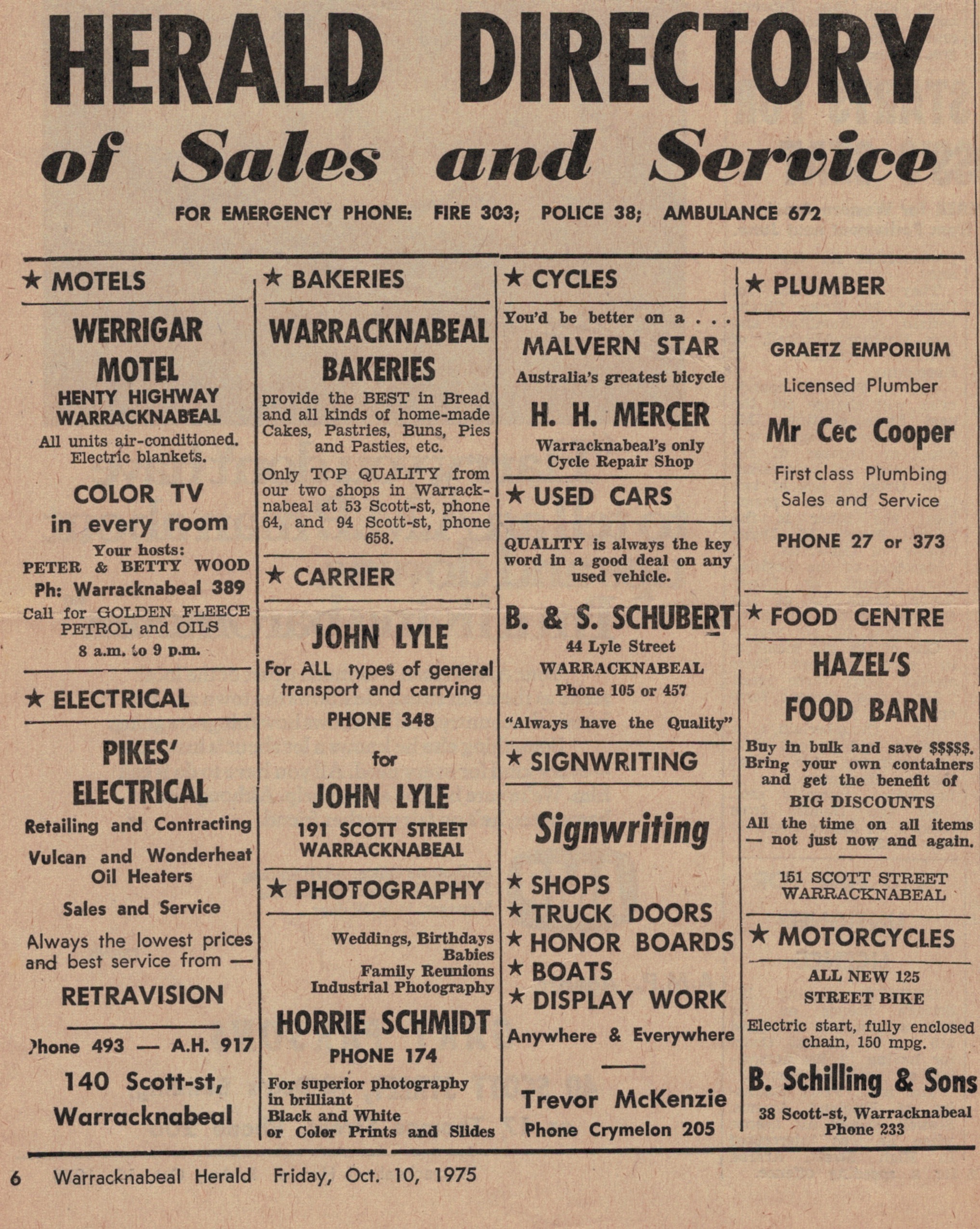 “Warracknabeal Herald” (Vic.), Friday 10 October 1975, page 6.