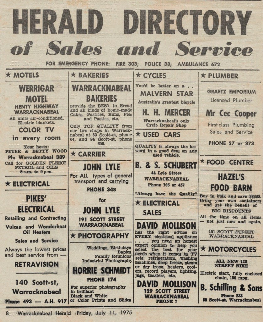 “Warracknabeal Herald” (Vic.), Friday 11 July 1975, page 8.