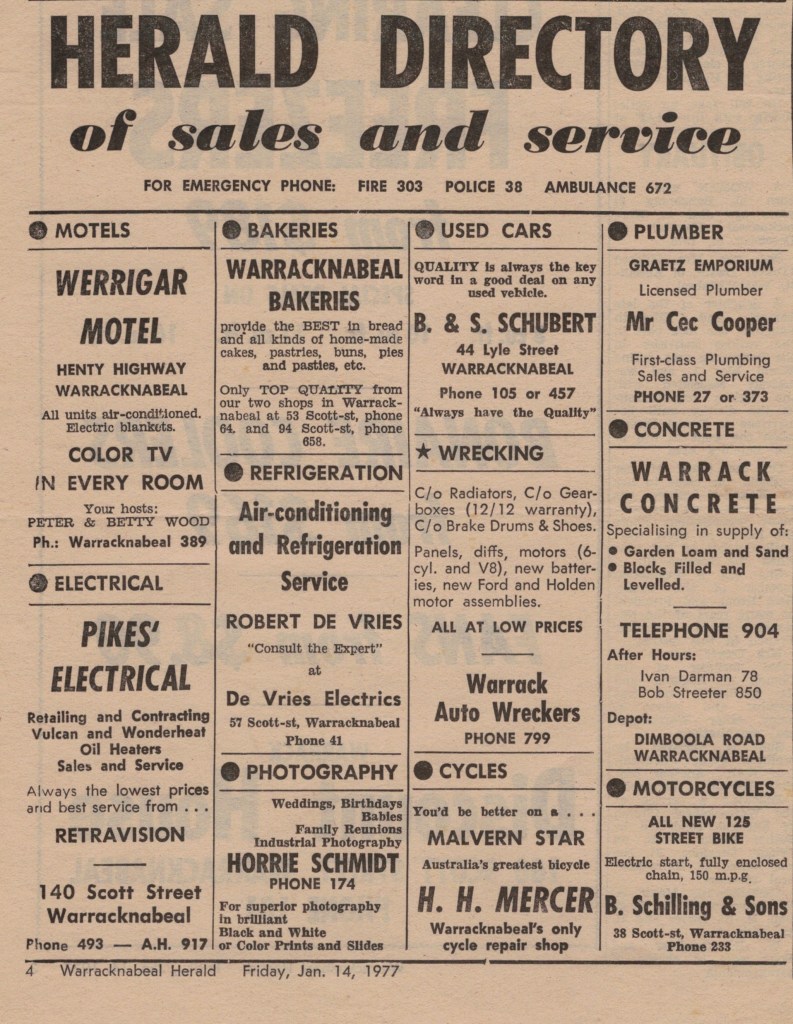 “Warracknabeal Herald” (Vic.), Friday 14 January 1977, page 4.