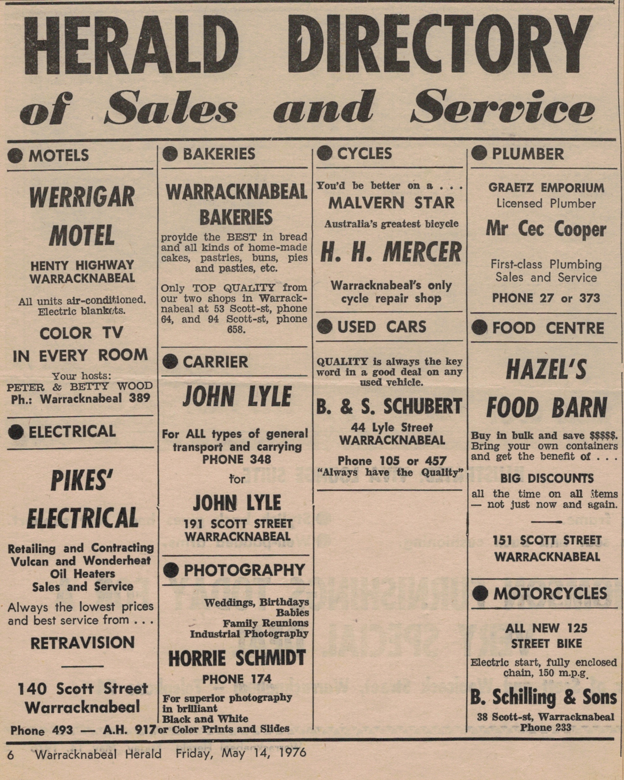 “Warracknabeal Herald” (Vic.), Friday 14 May 1976, page 6.