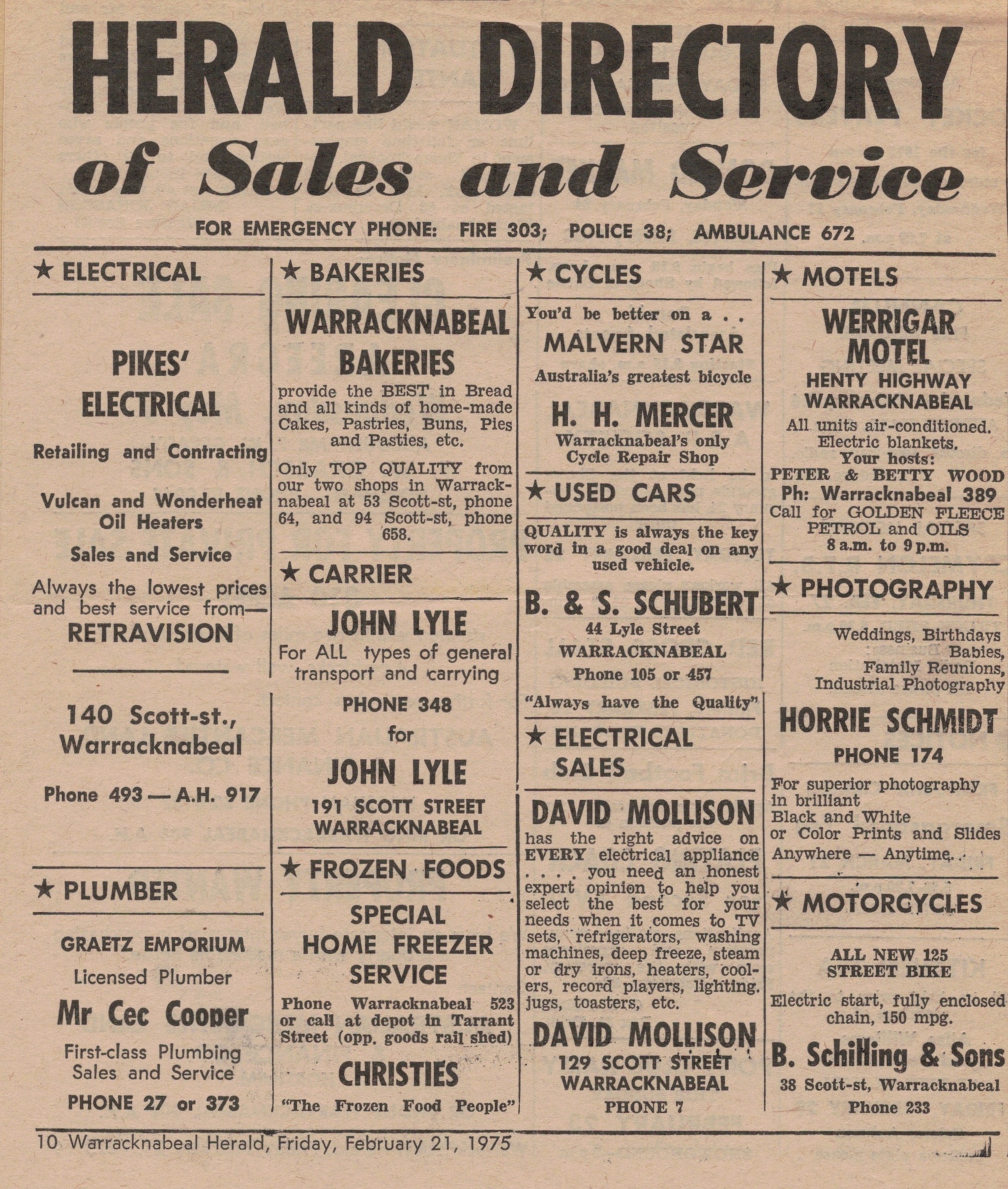 “Warracknabeal Herald” (Vic.), Friday 21 February 1975, page 10.