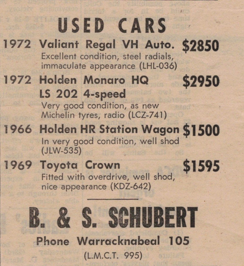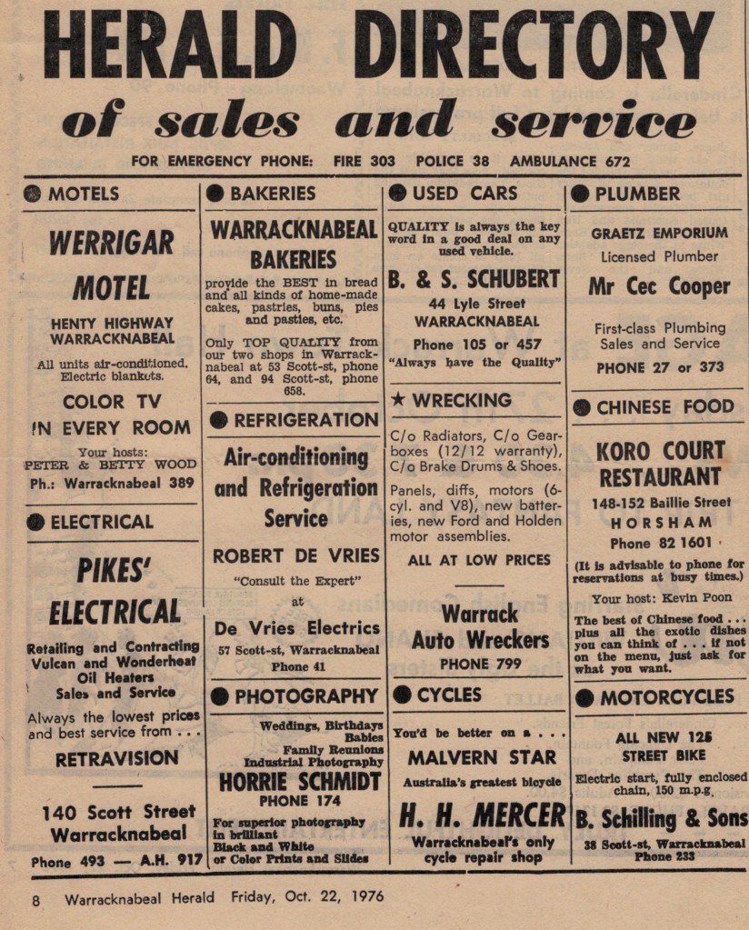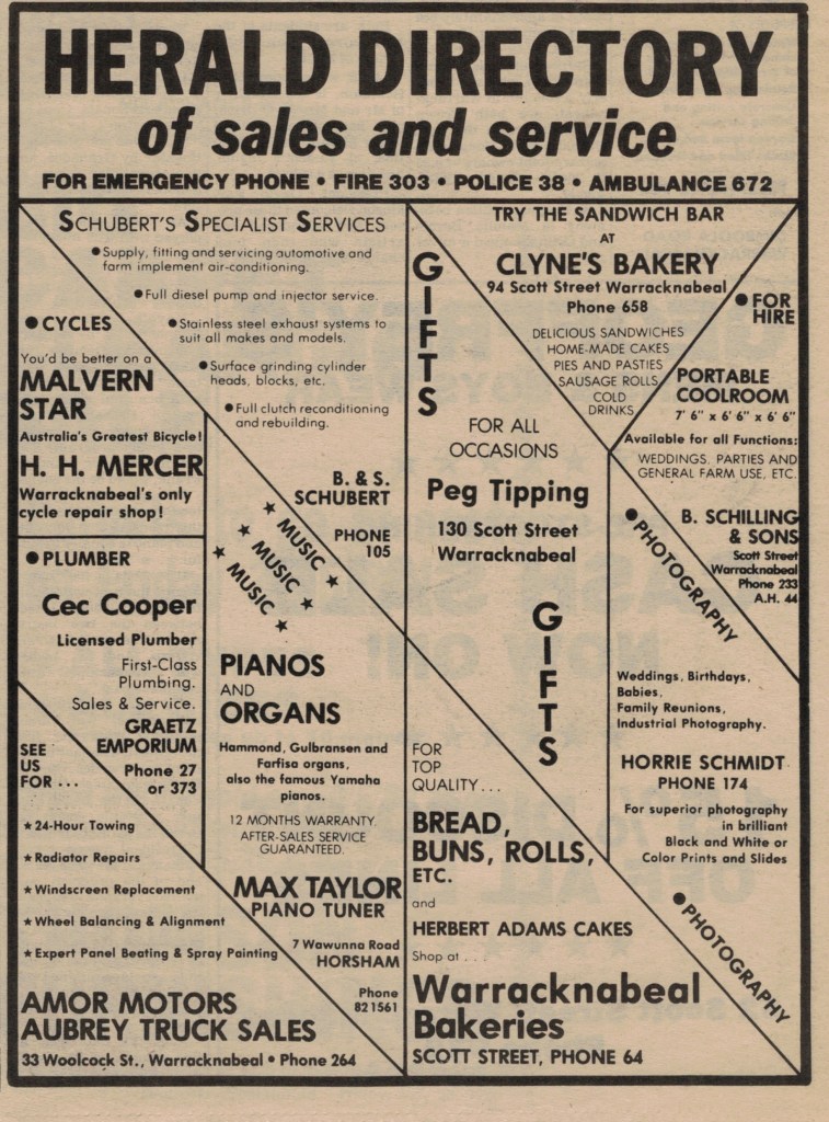 “Warracknabeal Herald” (Vic.), Friday 2 April 1976, page 11.÷