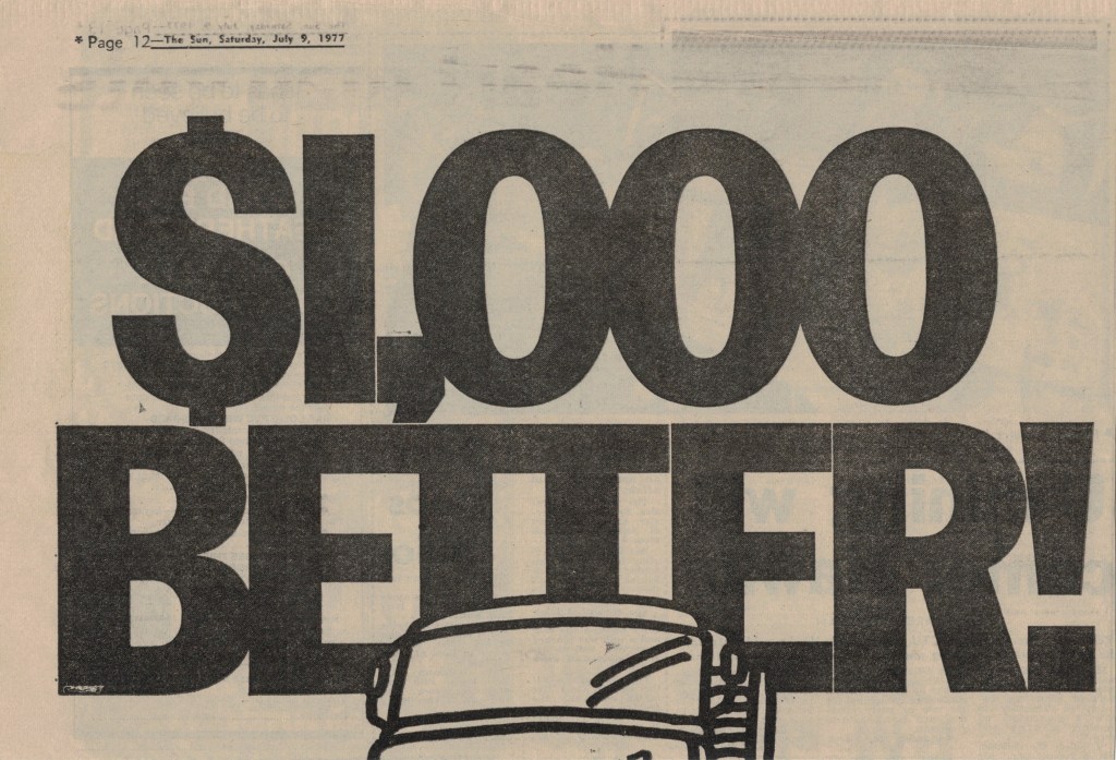 “Sun” (Melbourne, Vic.), Saturday 9 July 1977, page 12.