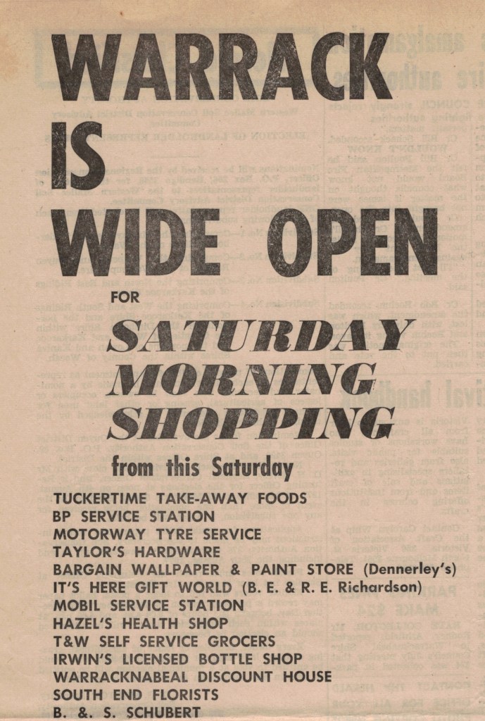 “Warracknabeal Herald” (Vic.), Friday 22 September 1967, page 10.