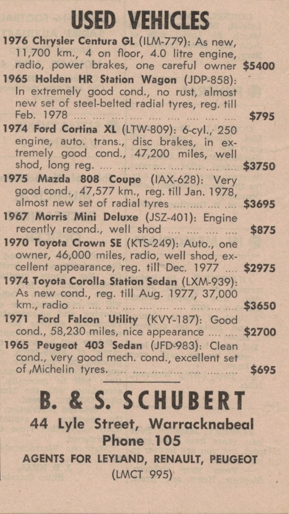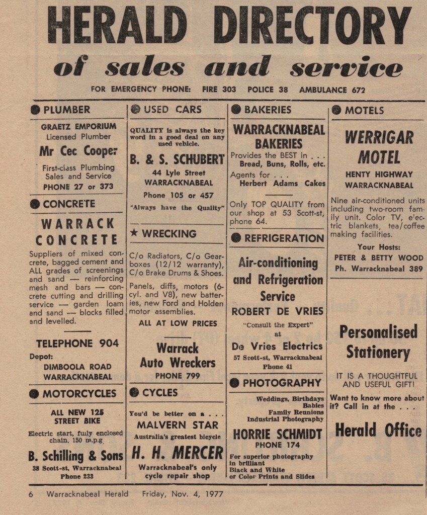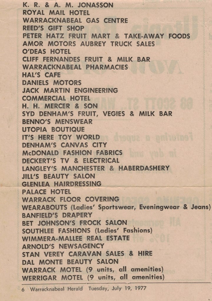 “Warracknabeal Herald”, Tuesday 19 July 1977, page 6.