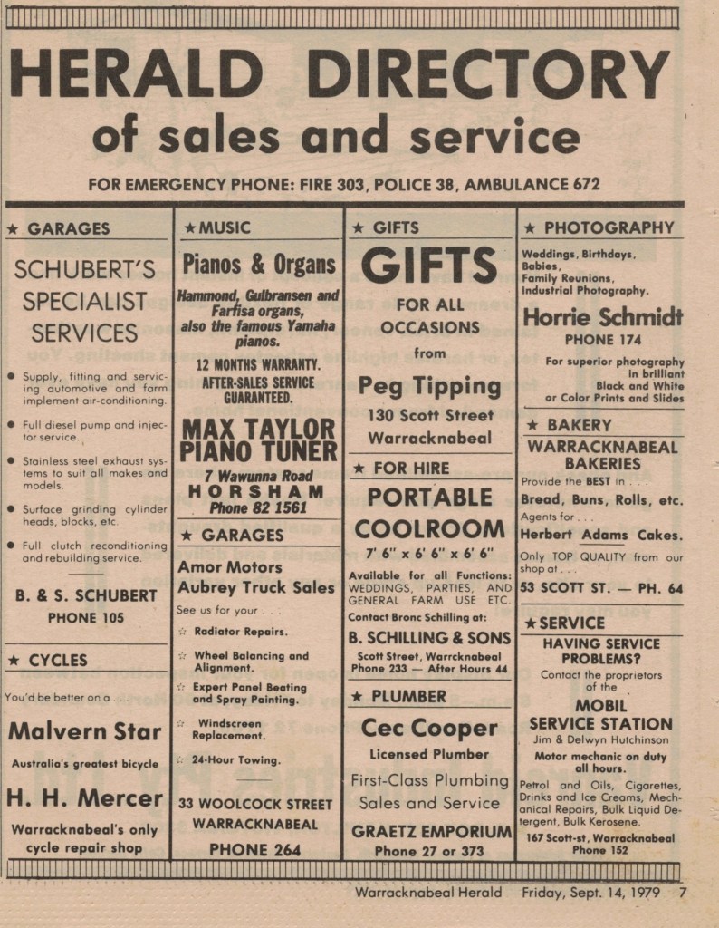 “Warracknabeal Herald” (Vic.), Friday 14 September 1979, page 7.