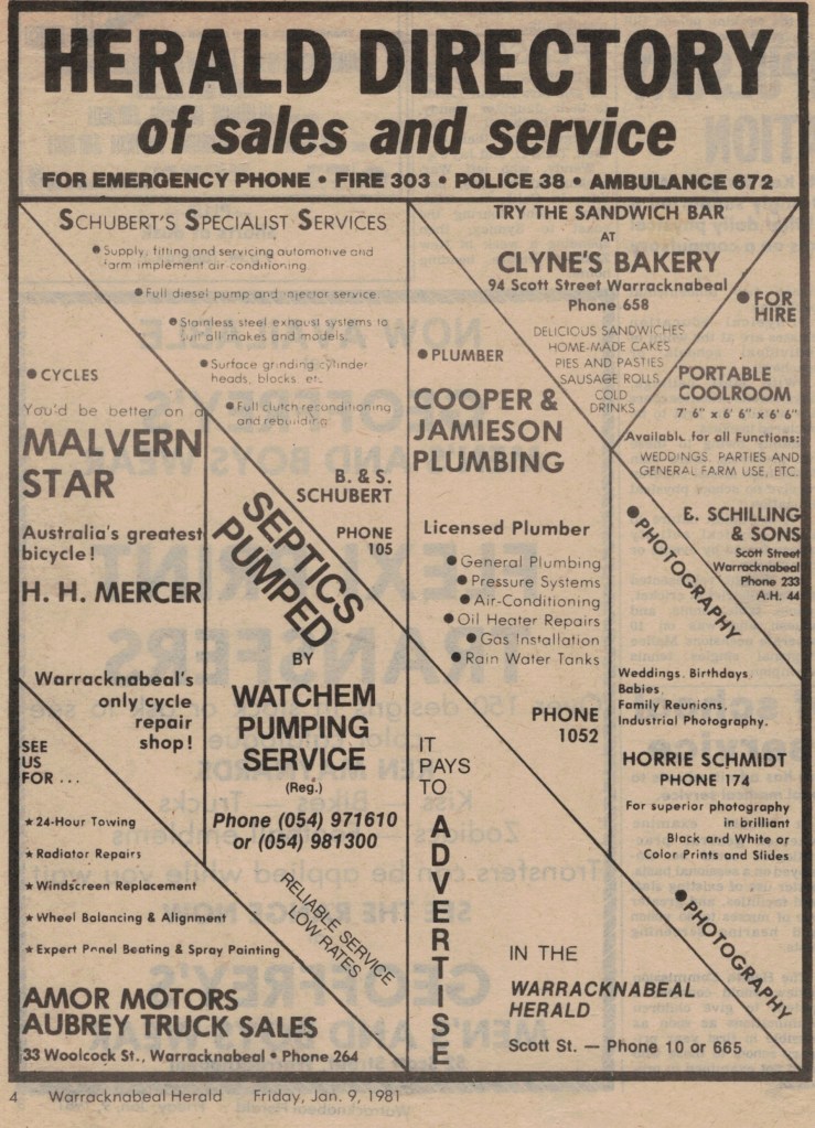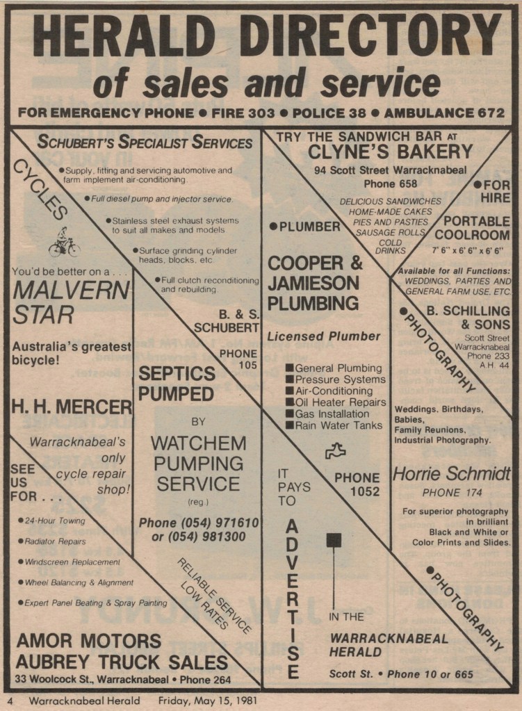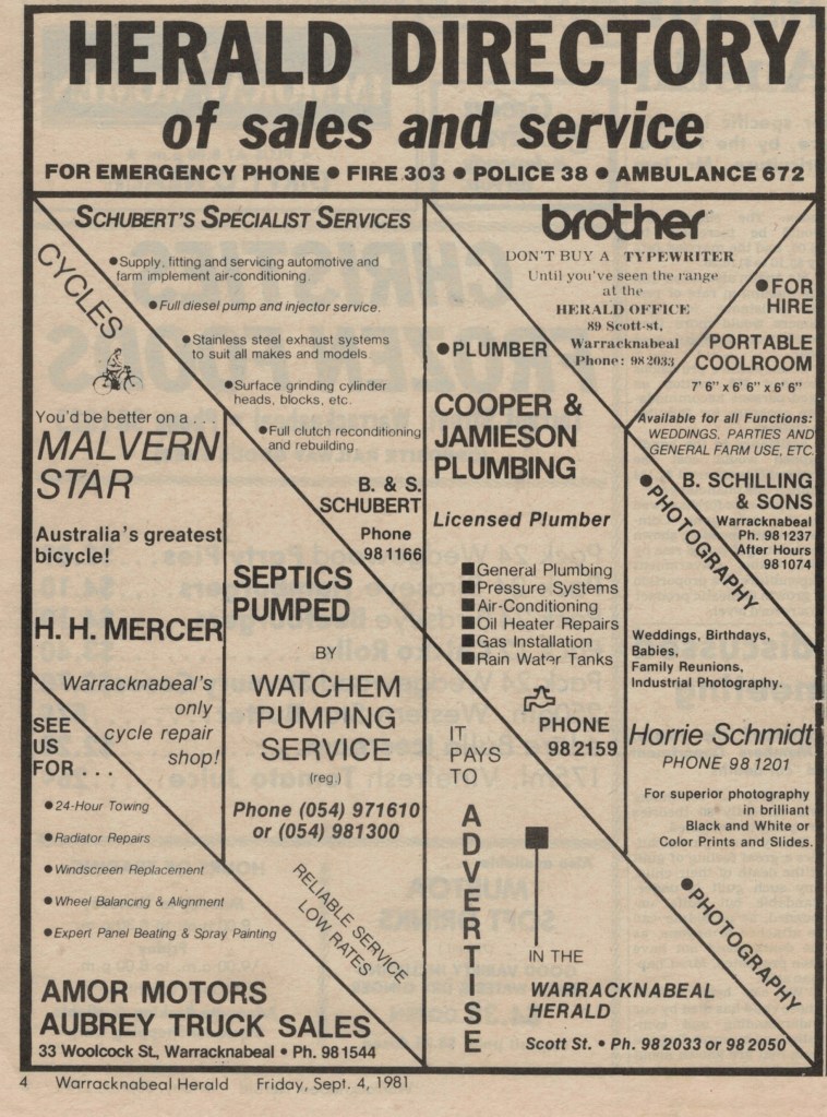 “Warracknabeal Herald” (Vic.), Friday 4 September 1981, page 4.