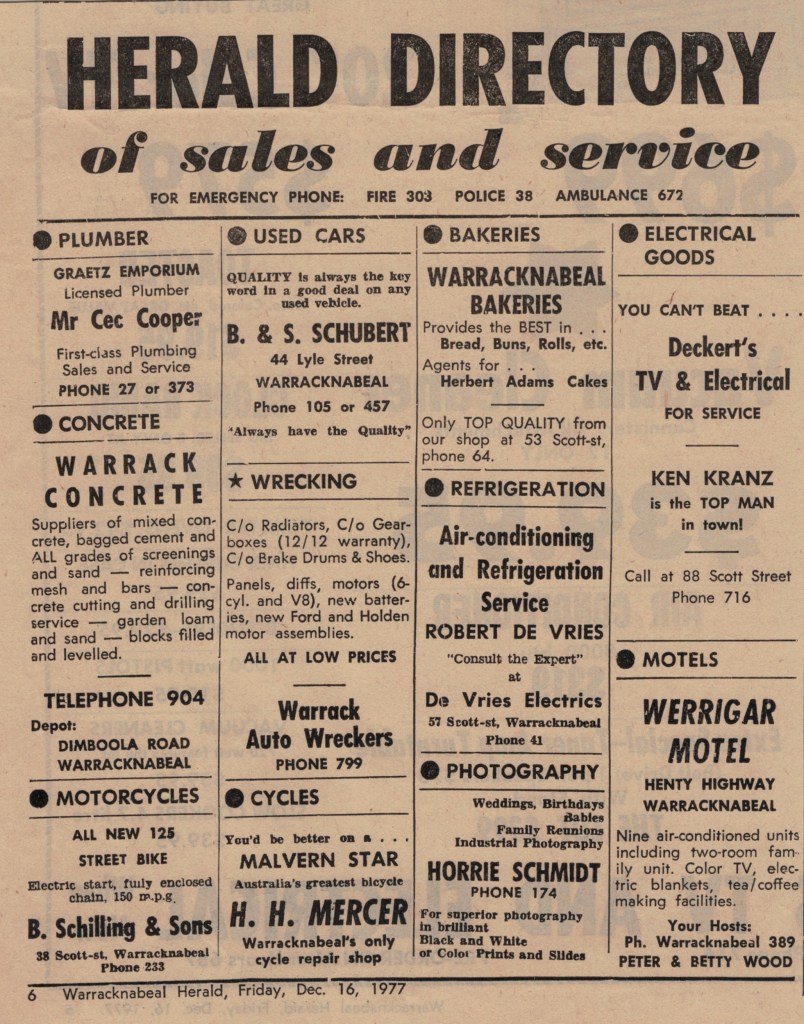 “Warracknabeal Herald” (Vic.), Friday 16 December 1977, page 6.