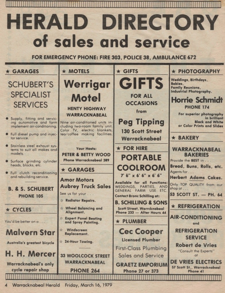 “Warracknabeal Herald” (Vic.), Friday 16 March 1979, page 4.
