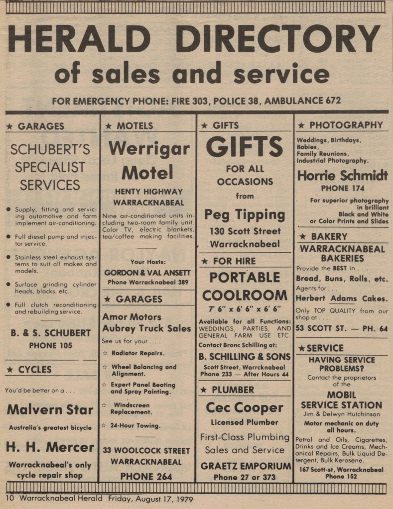 “Warracknabeal Herald” (Vic.), Friday 17 August 1979, page 10.