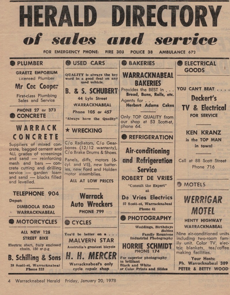“Warracknabeal Herald” (Vic.), Friday 20 January 1978, page 4.