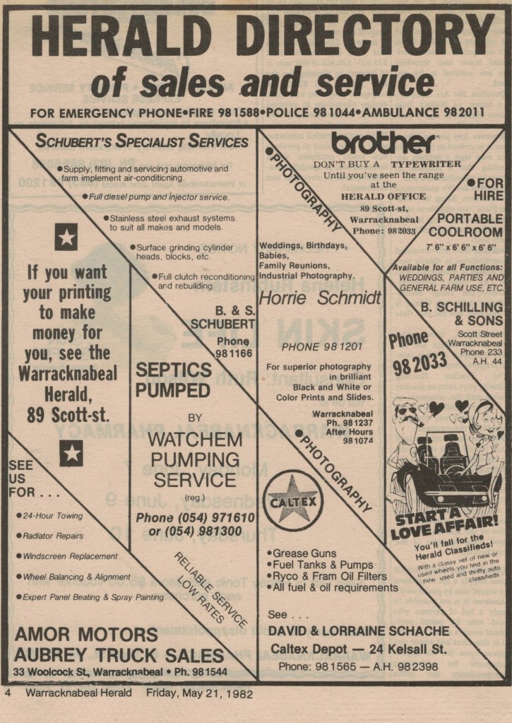 “Warracknabeal Herald” (Vic.), Friday 21 May 1982, page 4.