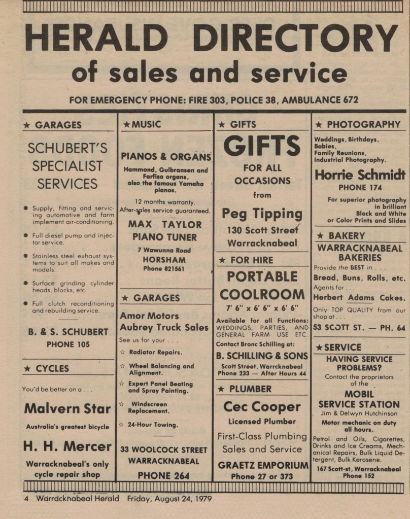 “Warracknabeal Herald” (Vic.), Friday 24 August 1979, page 4.