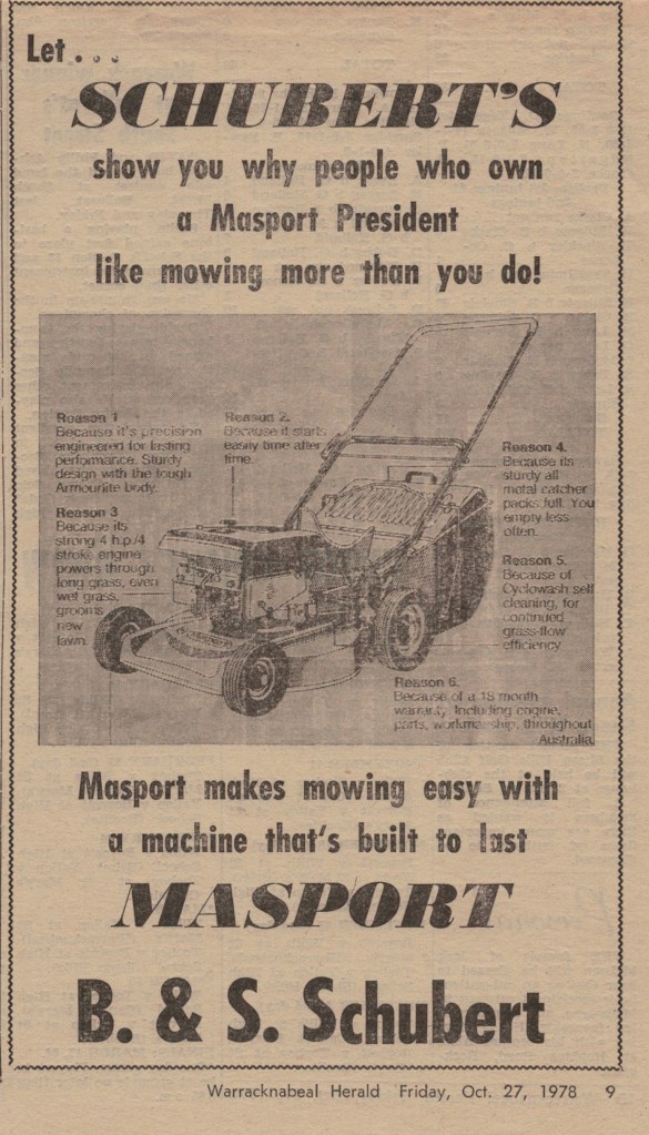 “Warracknabeal Herald” (Vic.), Friday 27 October 1978, page 9.