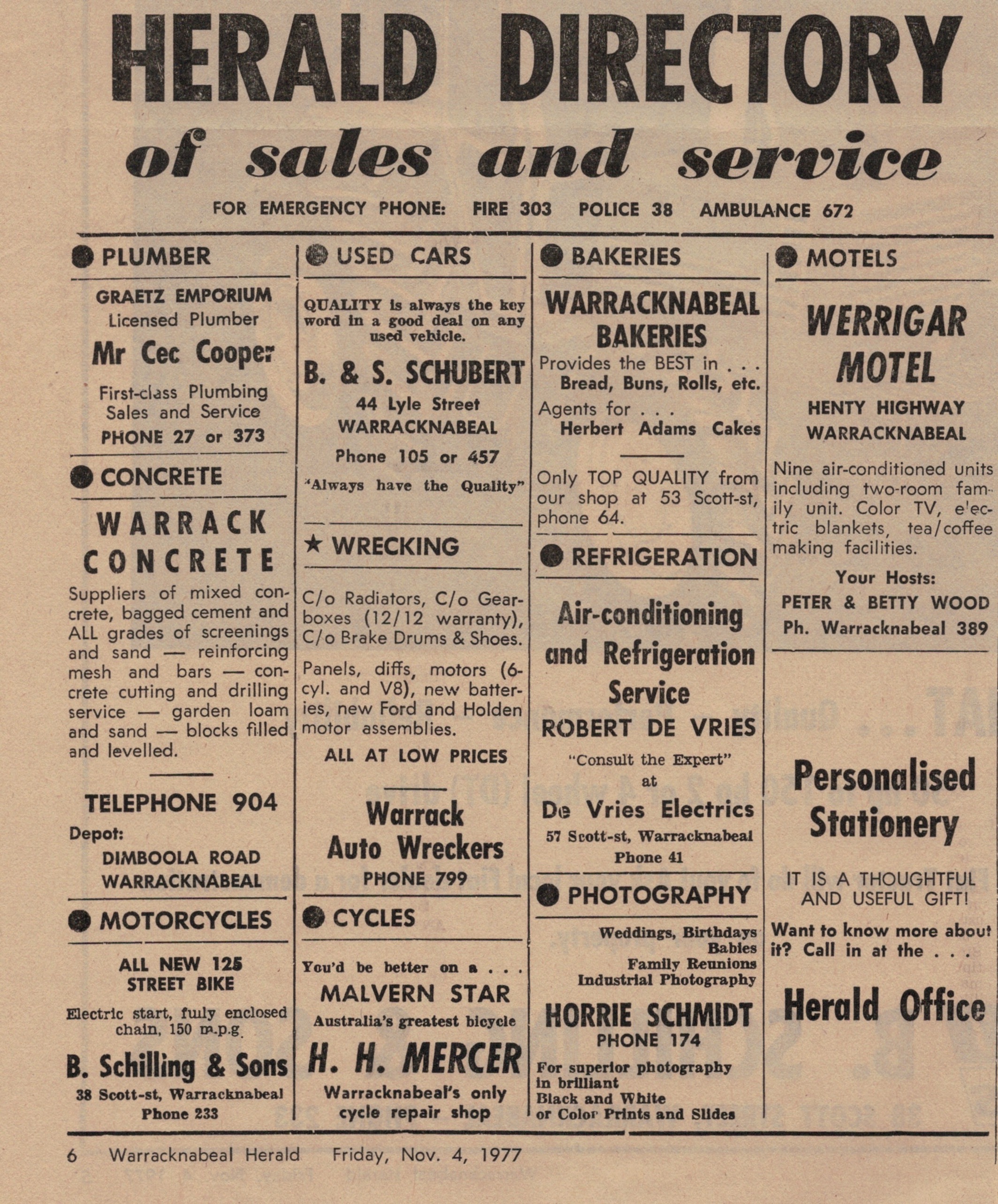 “Warracknabeal Herald” (Vic.), Friday 4 November 1977, page 6.