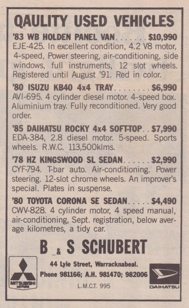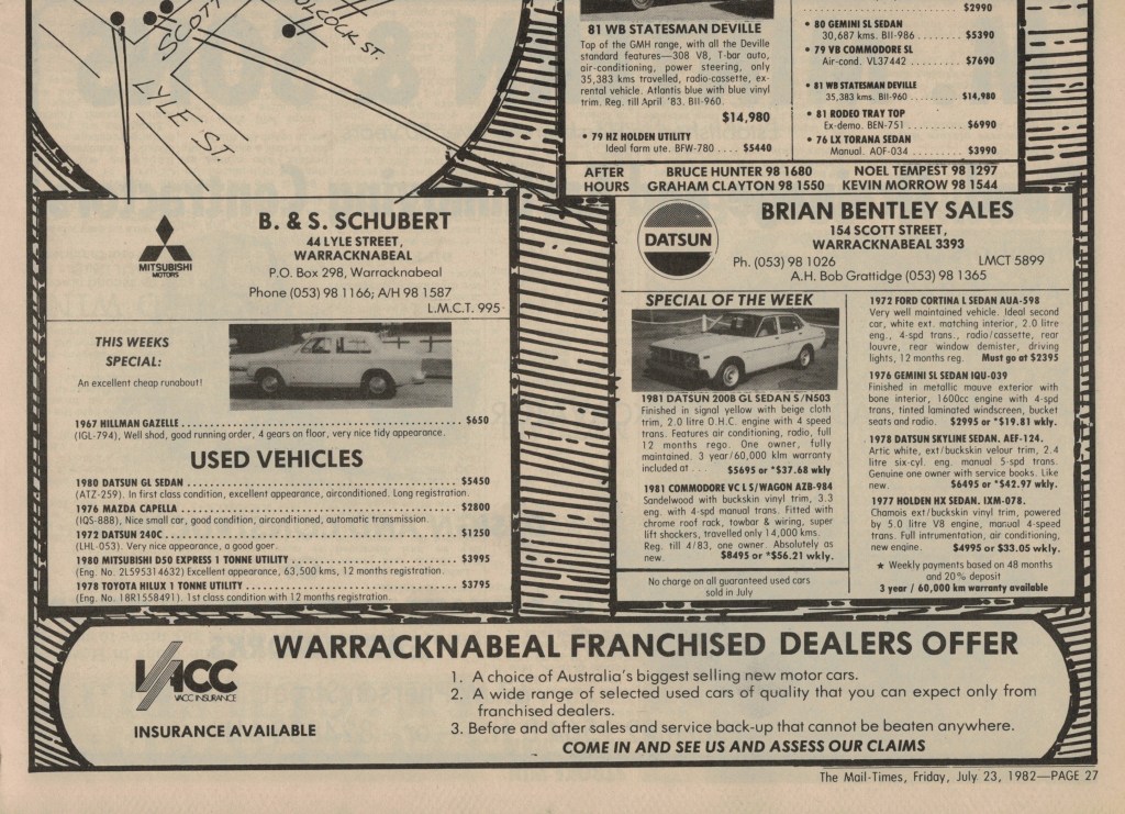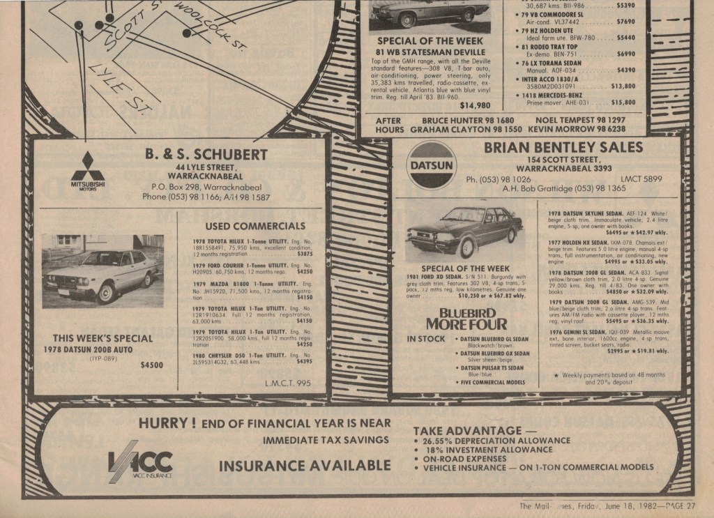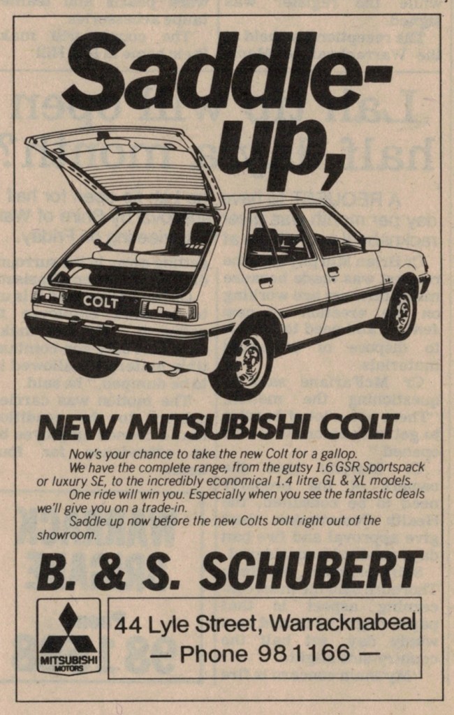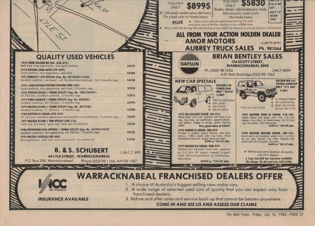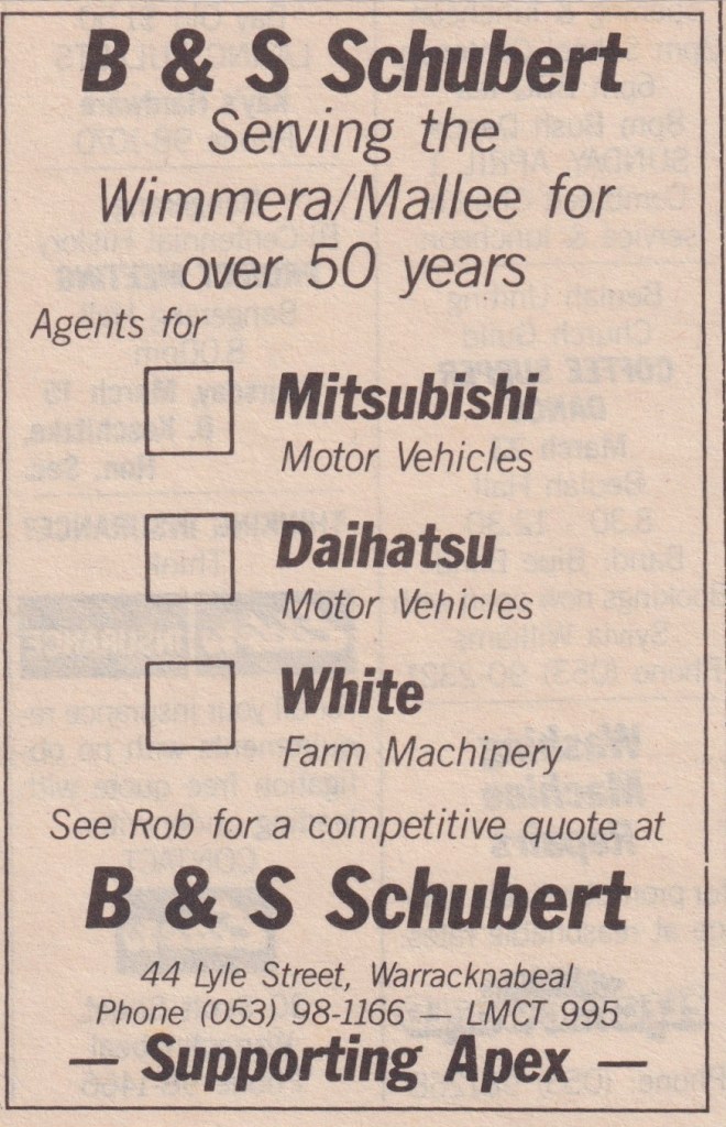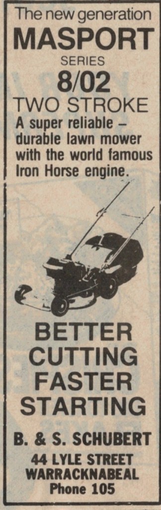 “Warracknabeal Herald” (Vic.), Friday 27 August 1982, page 8.