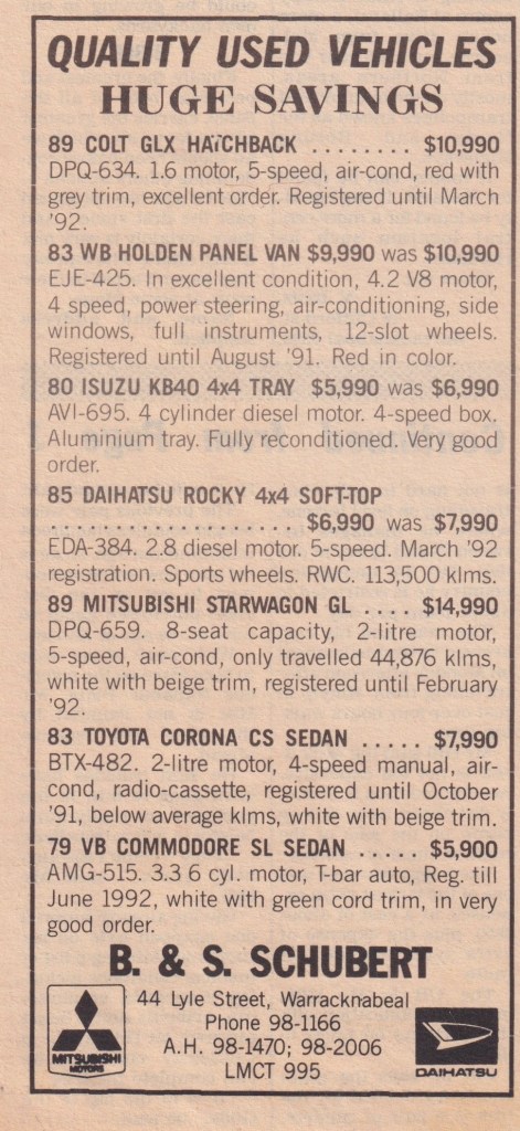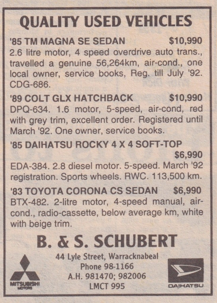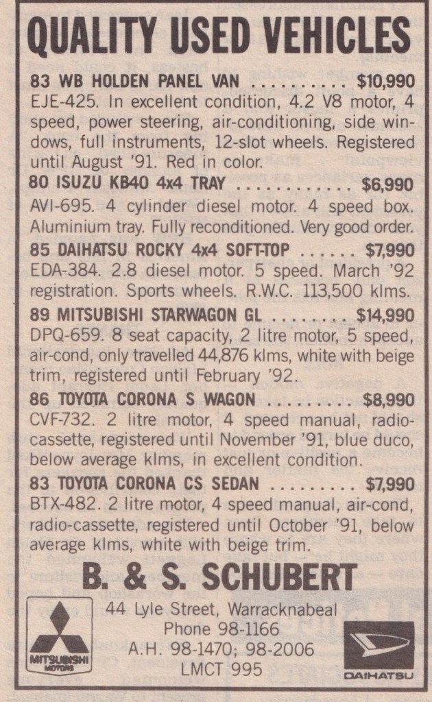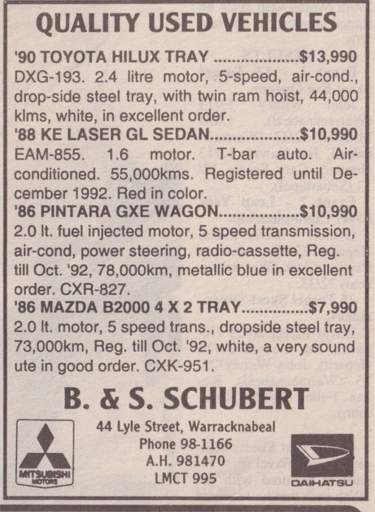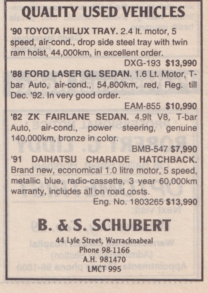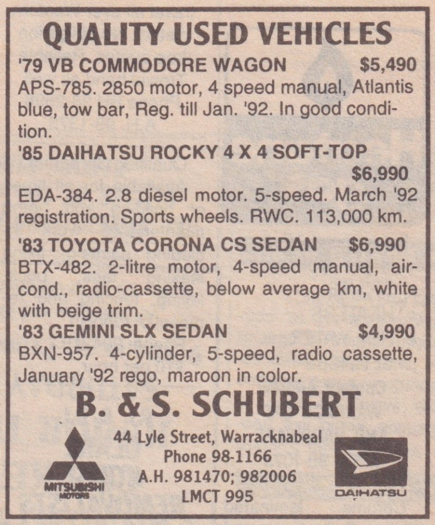 “Warracknabeal Herald” (Vic.), Friday 27 August 1982, page 8.