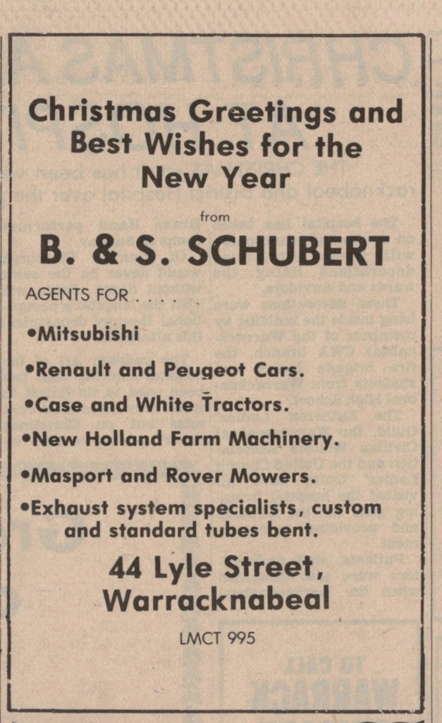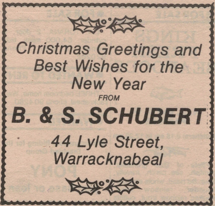 “Warracknabeal Herald” (Vic.), Friday 24 December 1982, page 10.