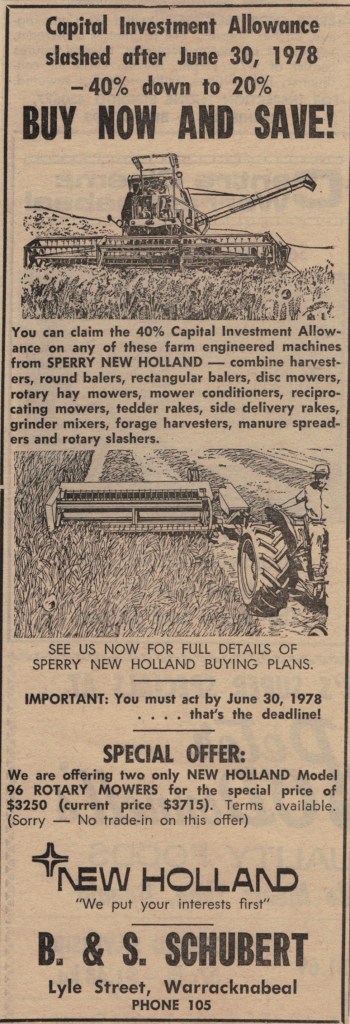 “Warracknabeal Herald” (Vic.), Friday 5 May 1978, page 6.