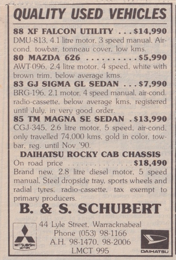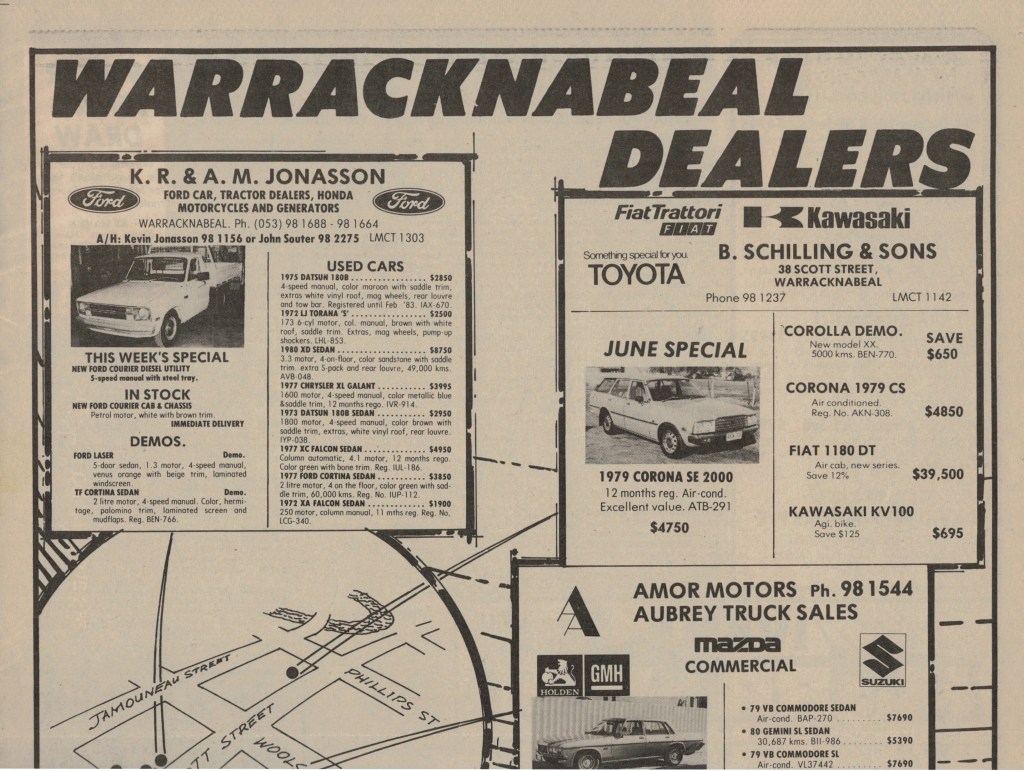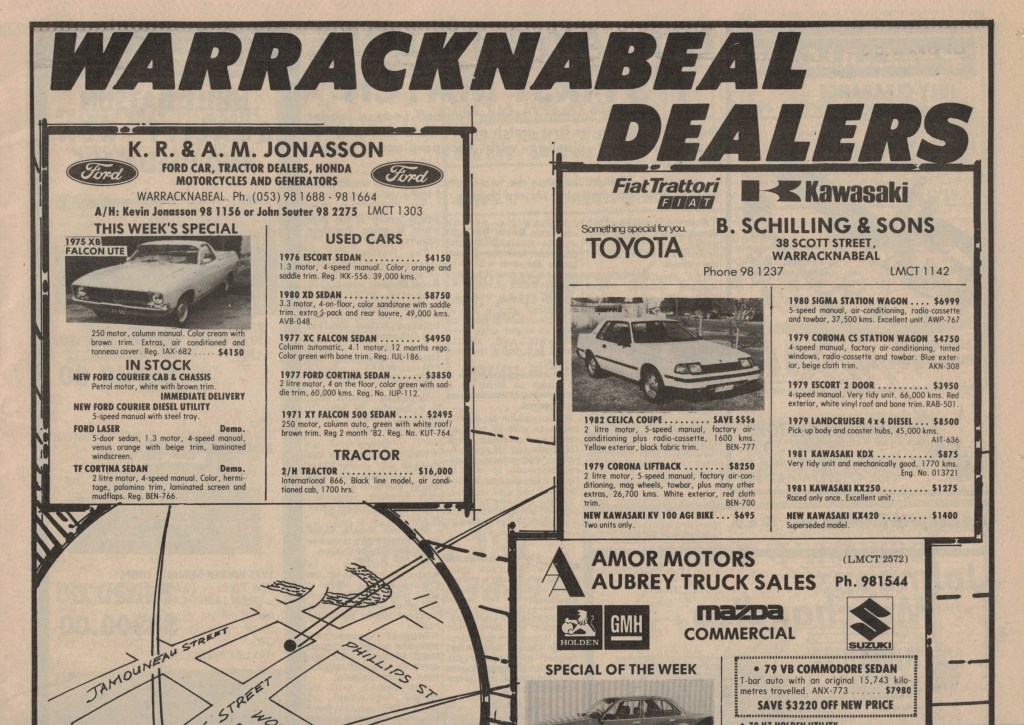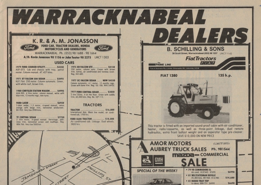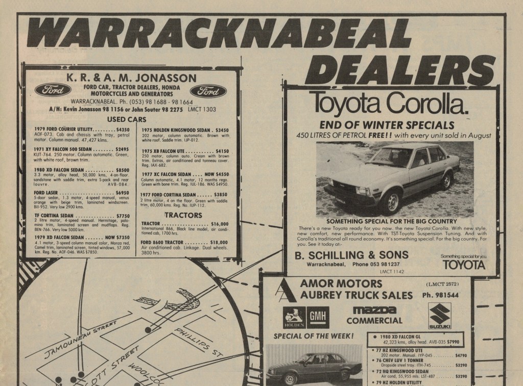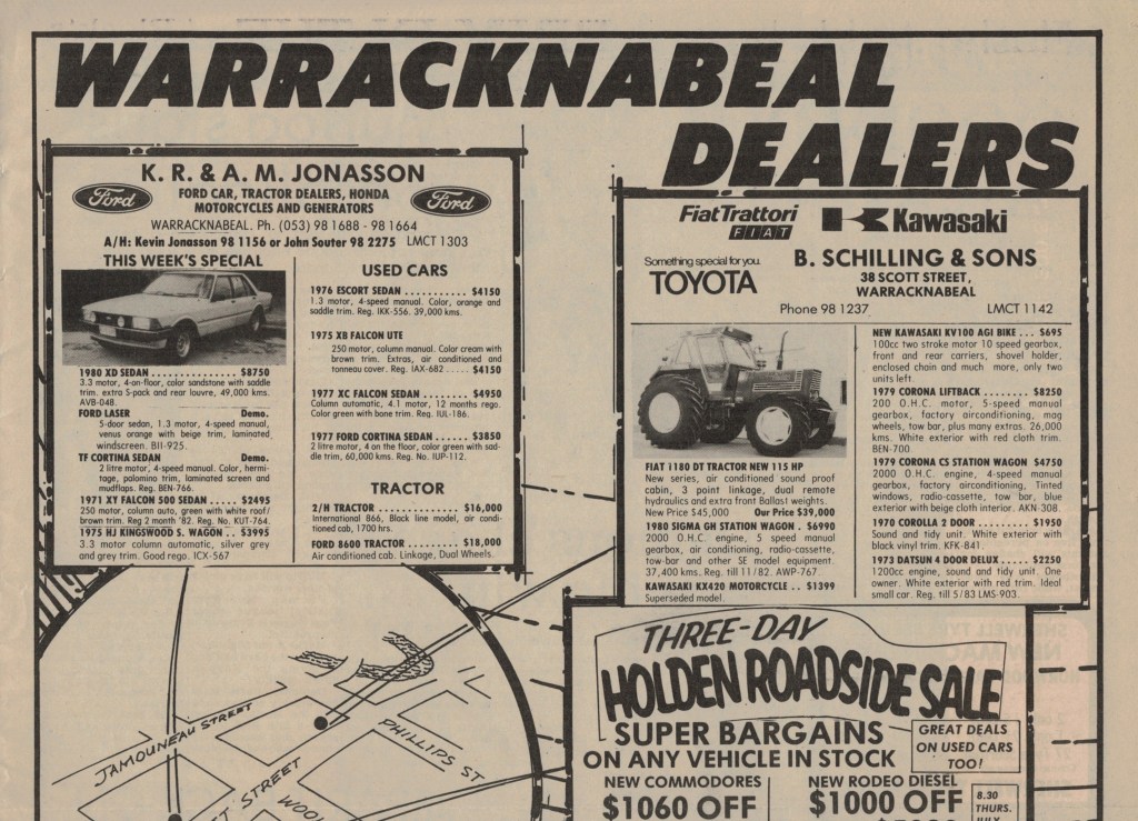 “Warracknabeal Herald” (Vic.), Friday 26 September 1980, page 4.“Warracknabeal Herald” (Vic.), Friday 3 October 1980, page 10.