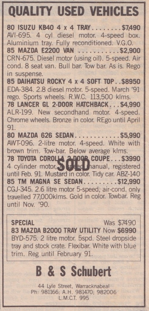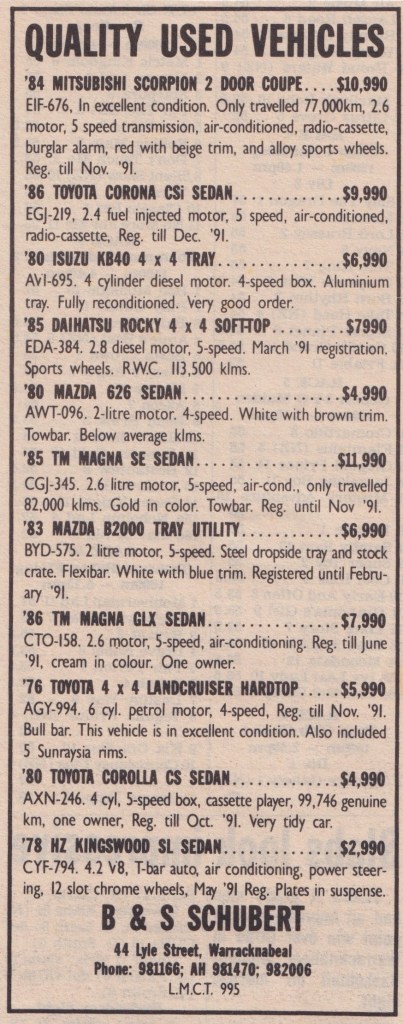 “Warracknabeal Herald” (Vic.), Friday 2 October 1981, page 11.