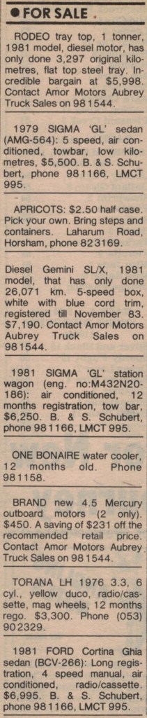 “Wimmera Mail-Times” (Horsham, Vic.), Friday 20 August 1982, page 31.