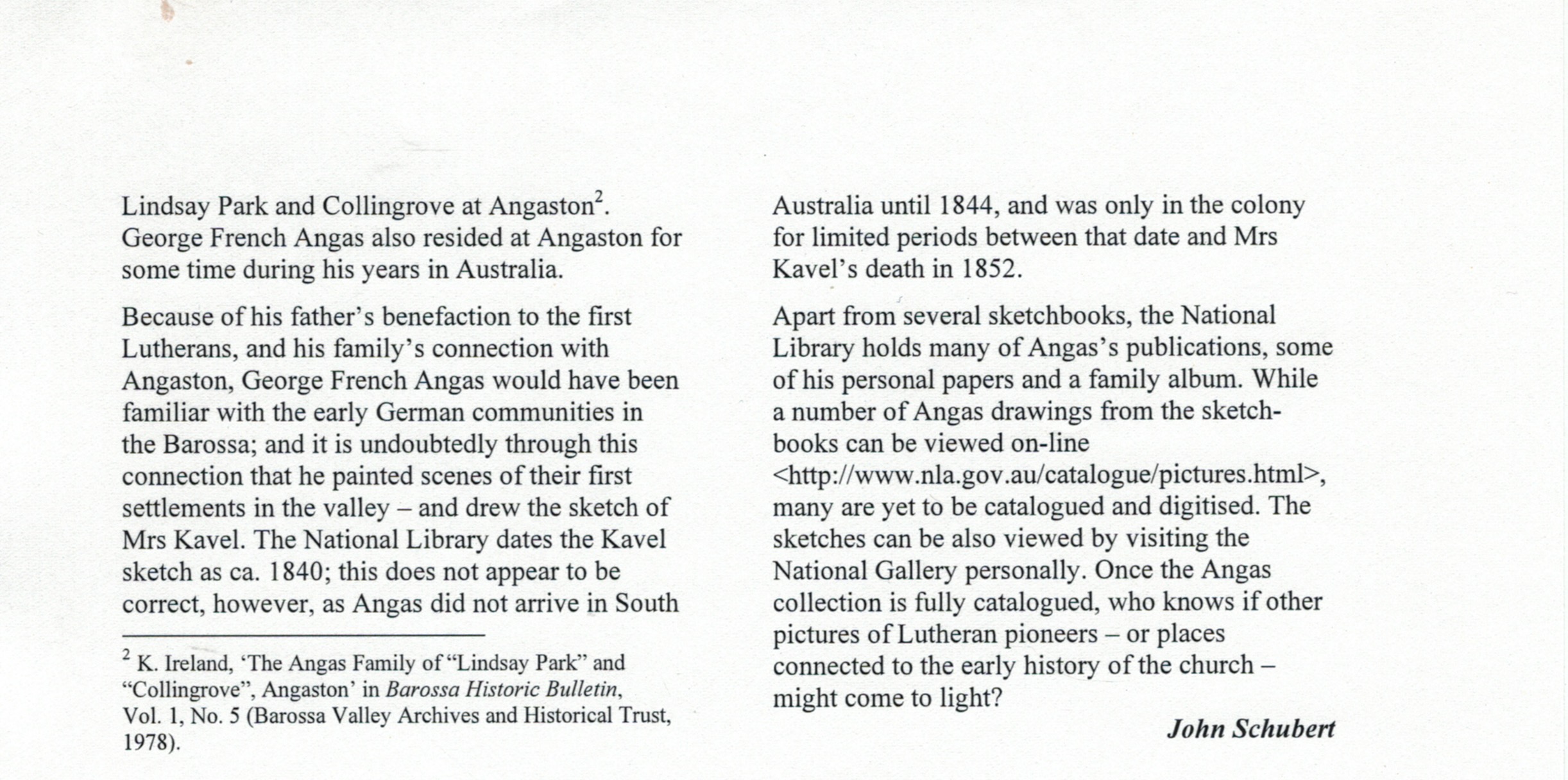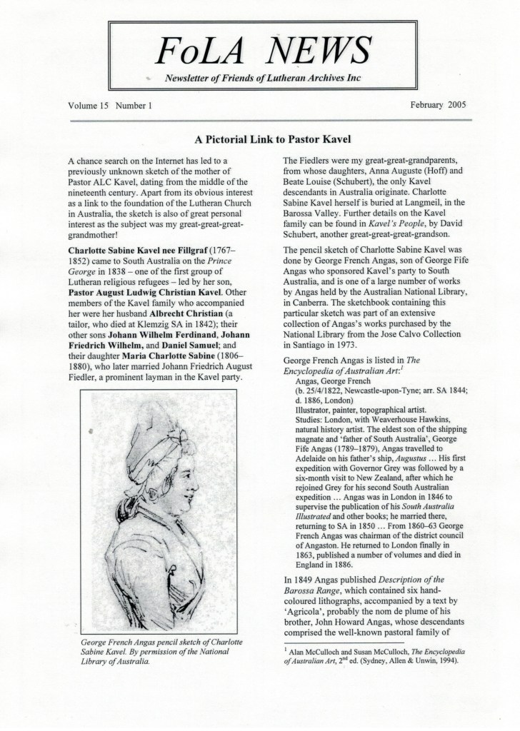 Article: A Pictorial Link to Pastor Kavel “FoLA News” (Adelaide, SA), Vol. 15, No. 1, February 2005, page 1 “FoLA News” (Adelaide, SA), Vol. 15, No. 1, February 2005, page 2.