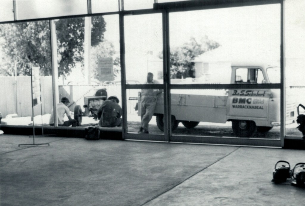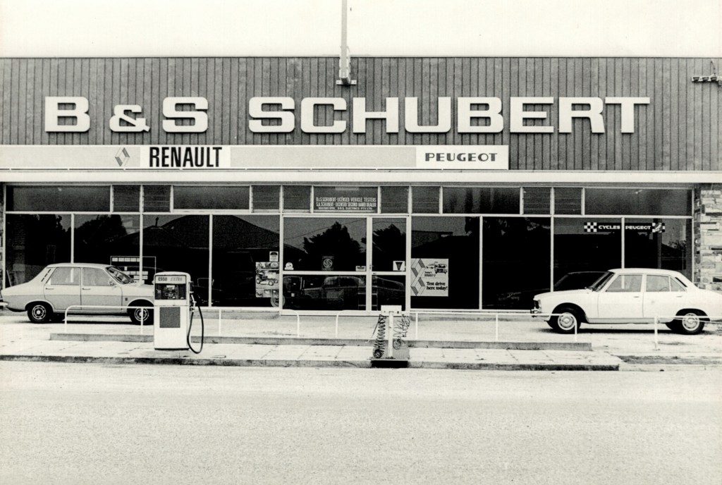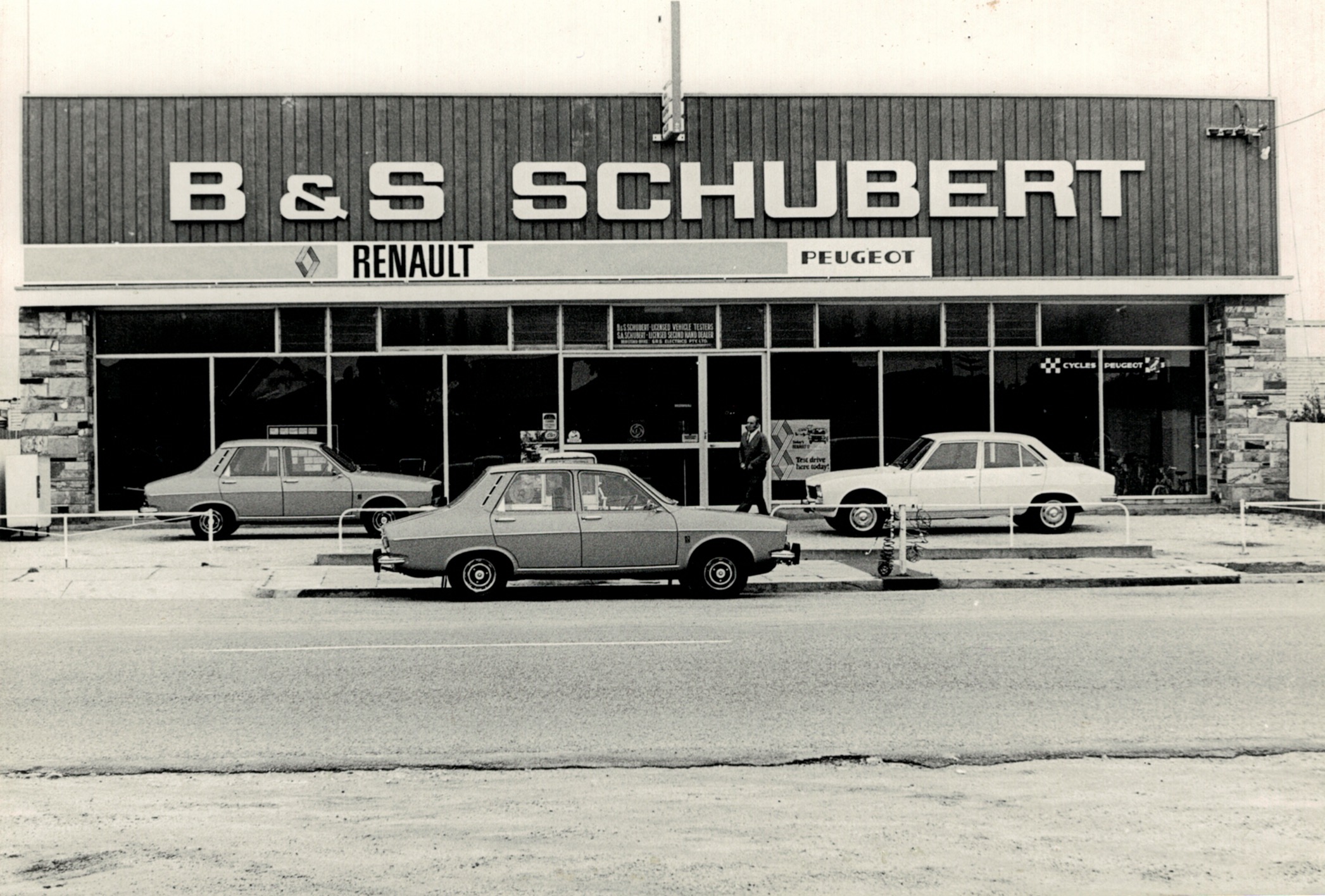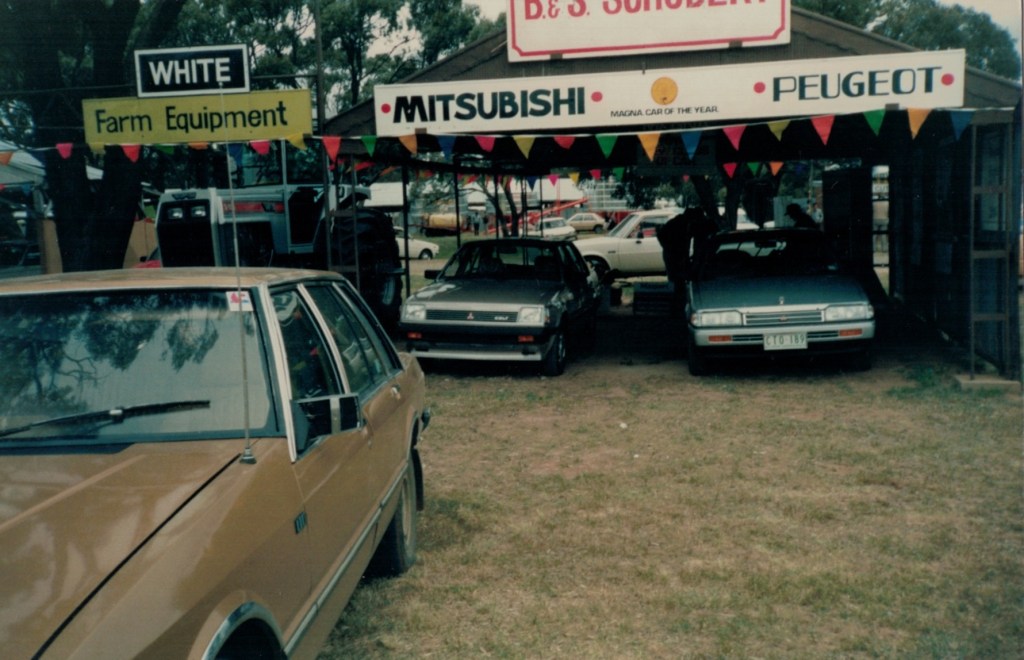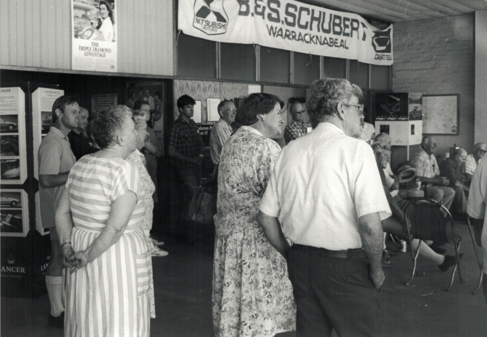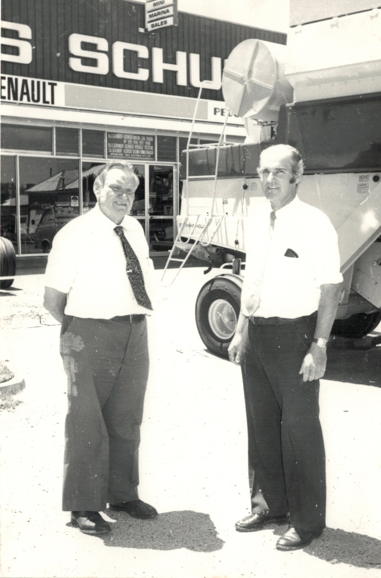 Bert Schubert in the spare parts in the new building.The frontage of the new building, before signage was completed, c. 1967..As above.The first White 4150 tractor delivered to Victoria. Purchased by J & A Thomson, Brim East, 29 May 1975.Andrew Livingston on a Case tractor in the back yard off Jamouneau Street, c. 1976 [Andrew Livingston].A photograph taken for advertising purposes, late 1970s or early 1980s [Warracknabeal Herald].As above.A photograph taken in 1977 when Bert and Sig Schubert were considering selling the business.Sig Schubert and Graeme Bell, salesman, 1979.Sig Schubert in the showroom, c. early 1980s.Sig Schubert with a Mitsubishi Starion car, Warrackanbeal Trade Fair, Wheatlands Museum, October 1983 [Horrie Schmidt].Presentation of an award for 10 years of outstanding service to the Case Tractor Company, August 1984. Standing L-R: Sig Schubert, Ian Newnham (Case Victorian Manager), Bert Schubert, Jeffrey Hinde (Case General Sales Manager), Michael Lethbridge (Case Victorian Agriculture Manager), and Neville Vise (Case Area Manager) [Warracknabeal Herald].Frontage taken mid-late 1980s.The flag flying at half mast after Sig’s death, February 1986. Sig always flew the flag every Australia Day, and the staff also flew it at half mast when Bert died in 1993 [Warracknabeal Herald].Photograph taken the evening before Sig’s funeral, February 1986. Catherine and Carl Schubert can be seen as well as the flag flying at half mast [JAS].B. and S. Schubert’s stand at the Warracknabeal Agricultural and Pastoral Society’s Show, 1980s.Bert Schubert outside the garage, taken December 1986 for a newspaper article marking the 50th anniversary of the business [Warracknabeal Herald].Frontage late 1980s [Warracknabeal Herald].Frontage 1980s, with Sigma vehicles.Entrance to the backyard from Jamounea Street, April 1991; Gardiner’s mortuary to the right.B & S Schubert, 1992 [Margie McKenzie Photography].Farewell afternoon tea on the last day of trading in the showroom, 28 January, 1994. Staff pictured [Warracknabeal Herald].Farewell afternoon tea on the last day of trading in the showroom, 28 January, 1994 [Warracknabeal Herald].