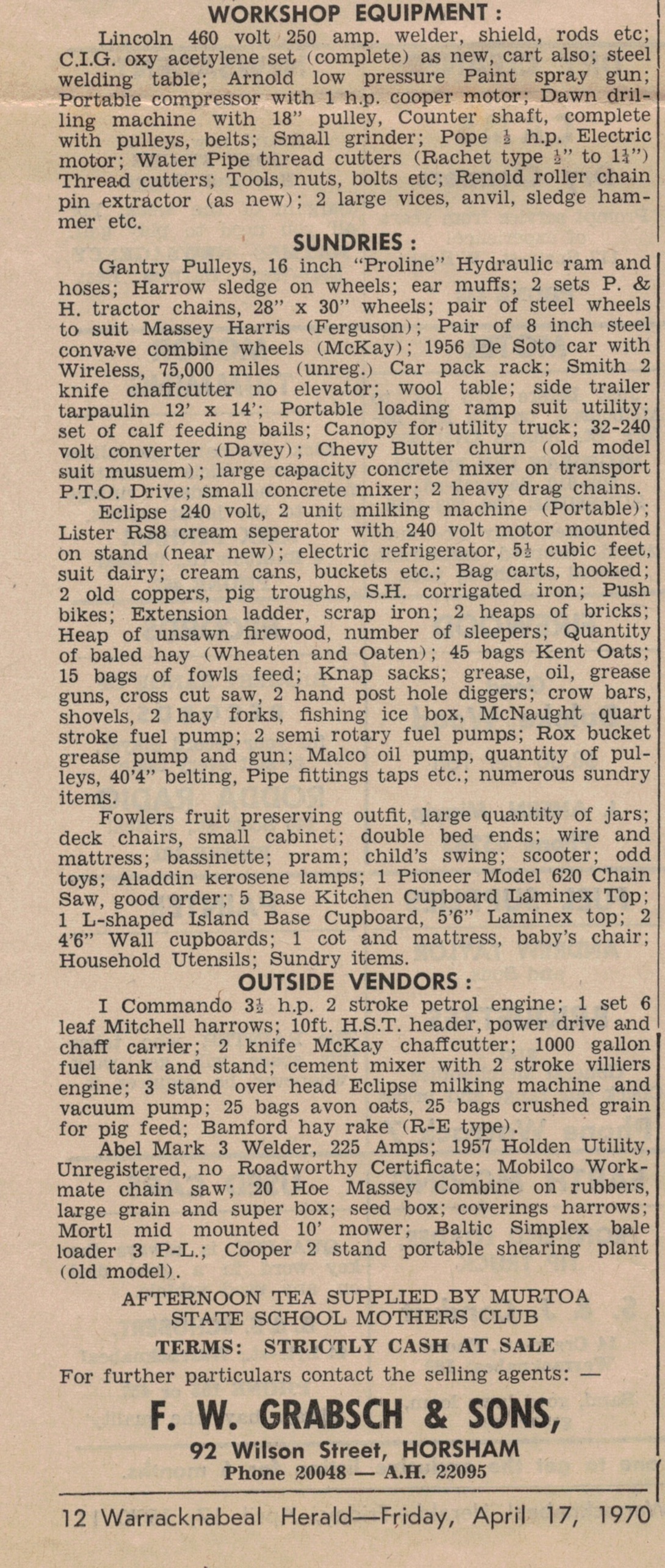 Also appeared in the “Warracknabeal Herald” (Vic.), Tuesday 28 April 1970, page 6; and “Dunmunkle Standard” (Murtoa, Vic.), Tuesday 21 April 1970, page 4.