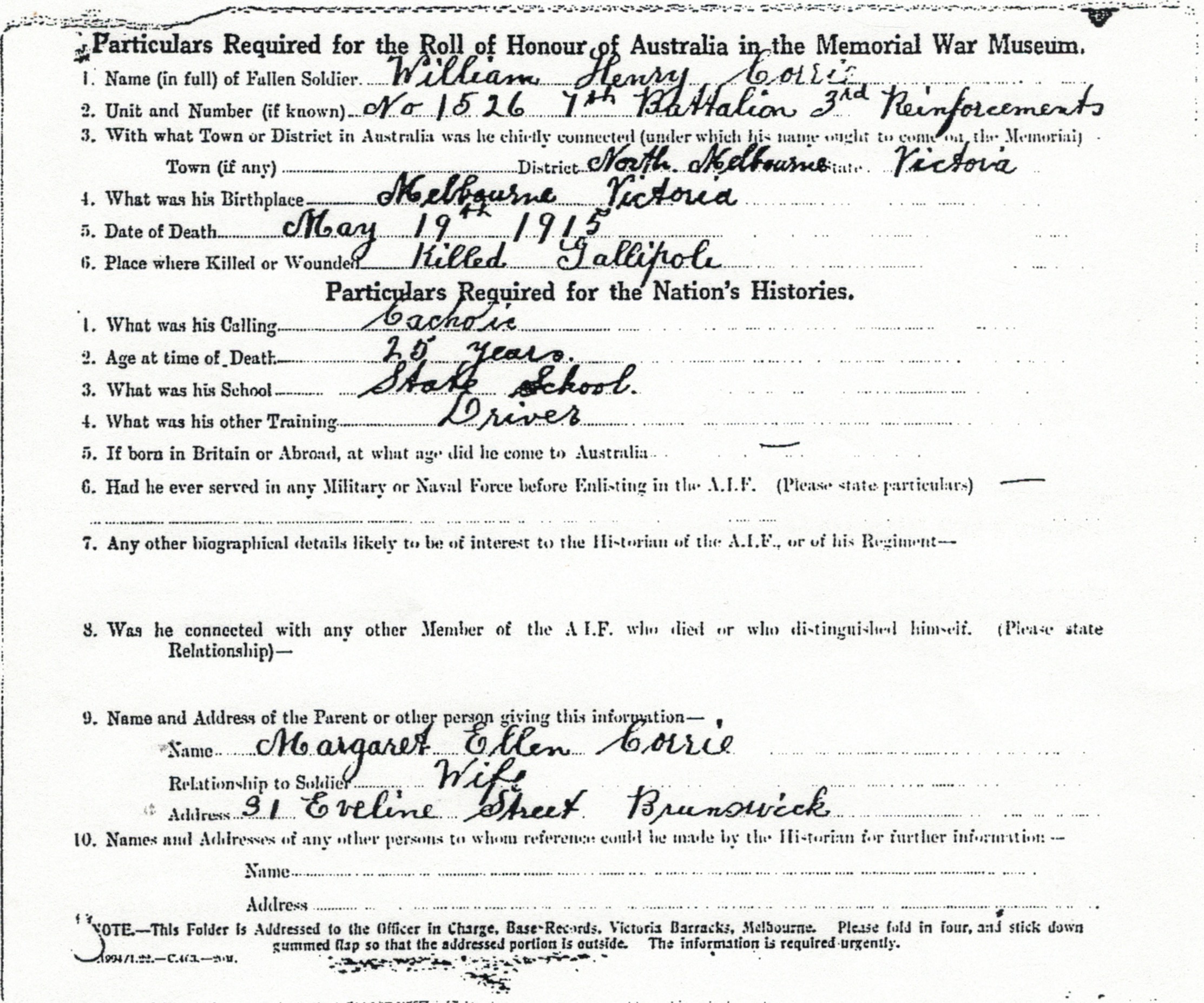 Documents and Memorabilia (1.2.2 CORRIE) Commonwealth War Graves Commission: grave registration records. Commonwealth War Graves Commission: headstone records.