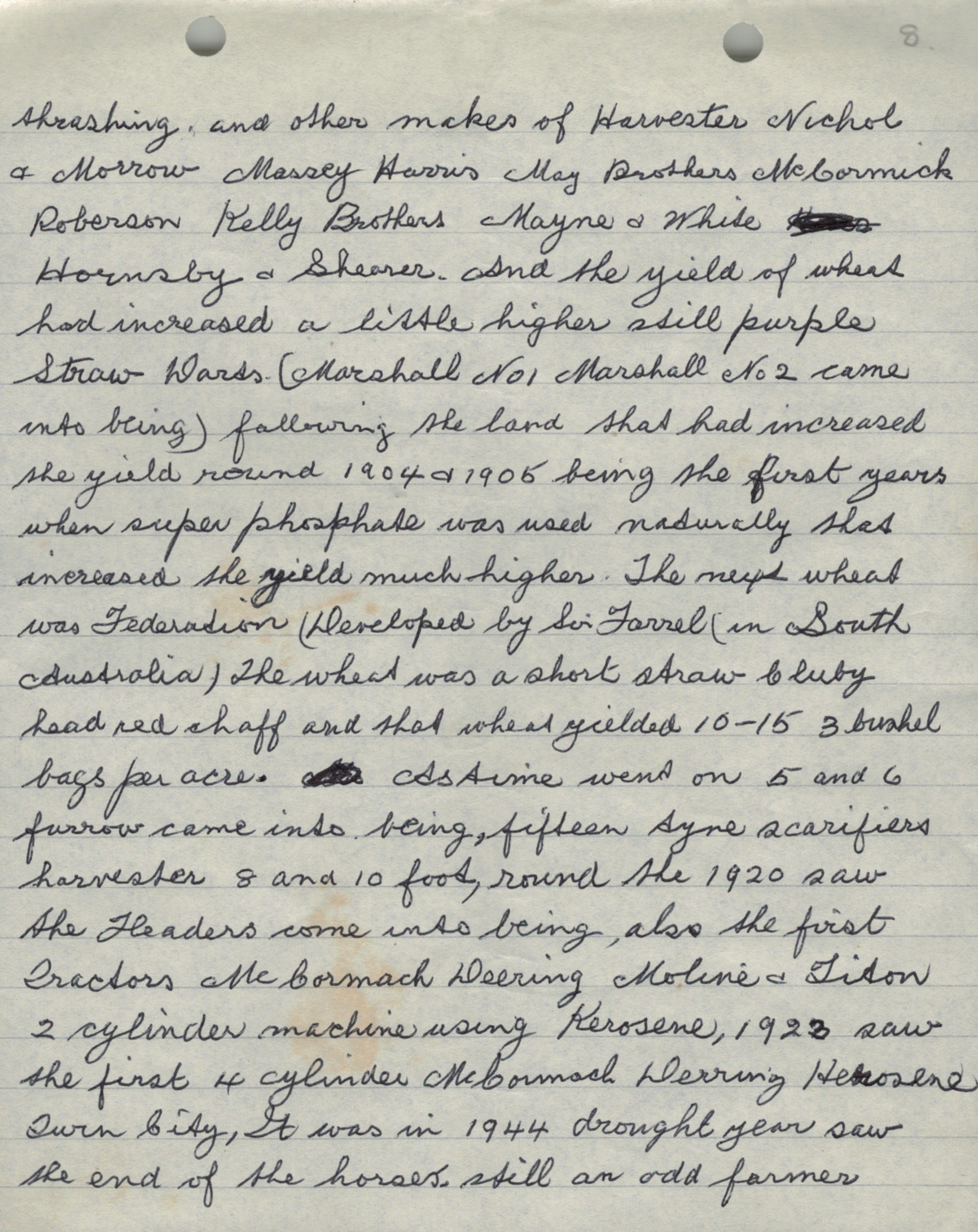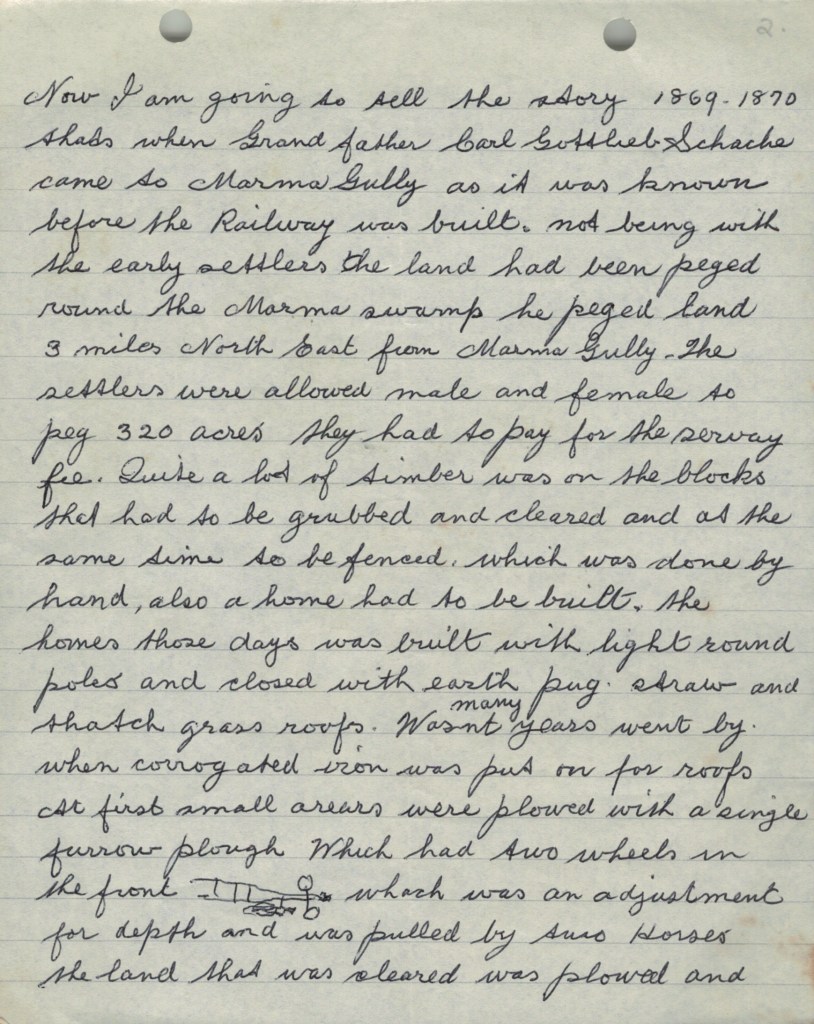 Documents and Memorabilia (1.3.6.1 SCHACHE) An account of the settlement and history of farming at Murtoa, written by Eddie Schache, Hamilton, for John Schubert, 1967 [JAS].