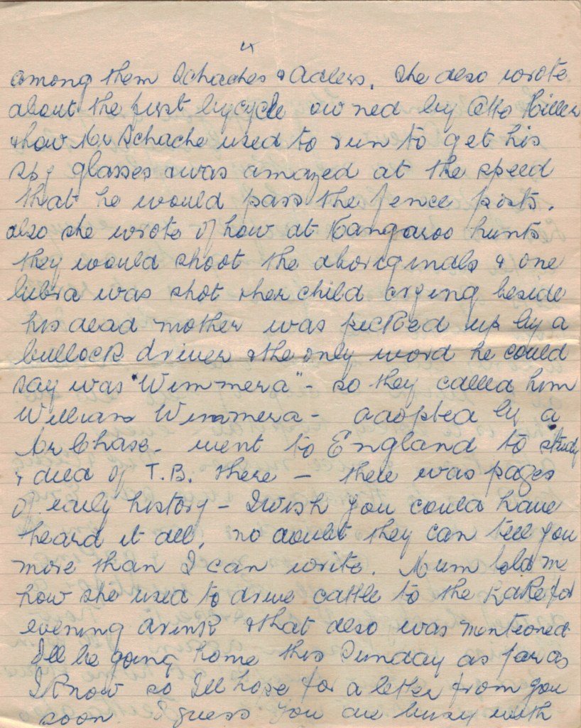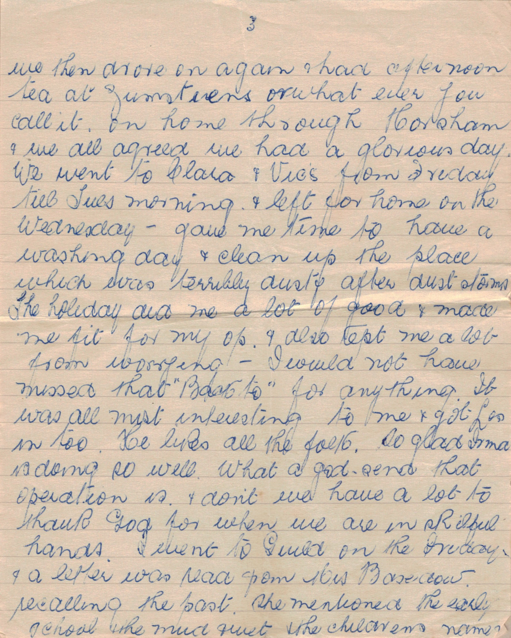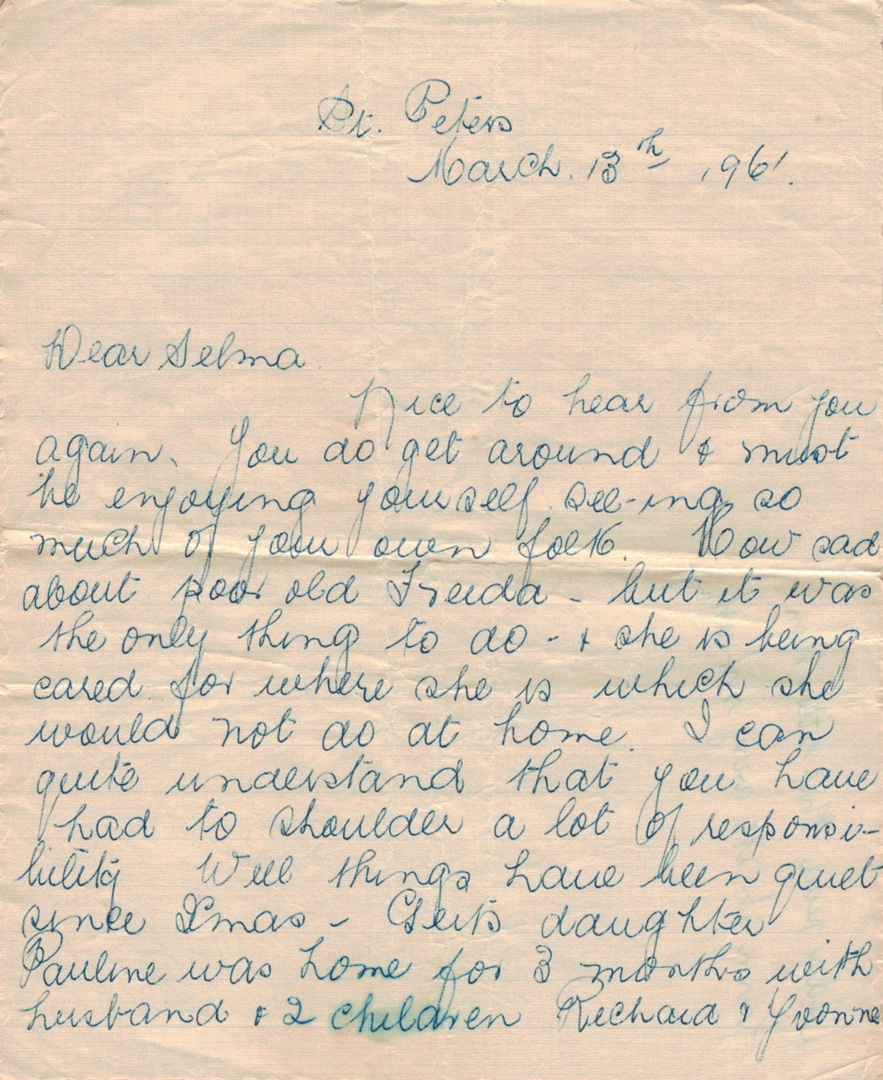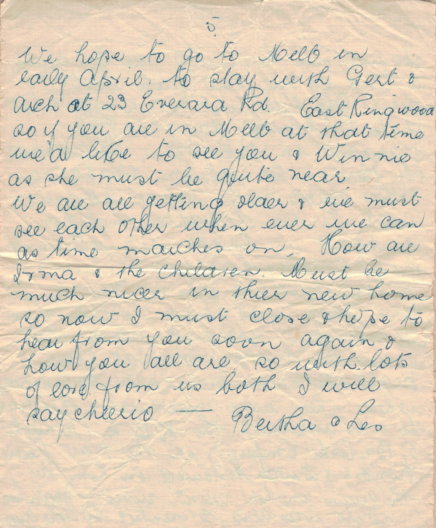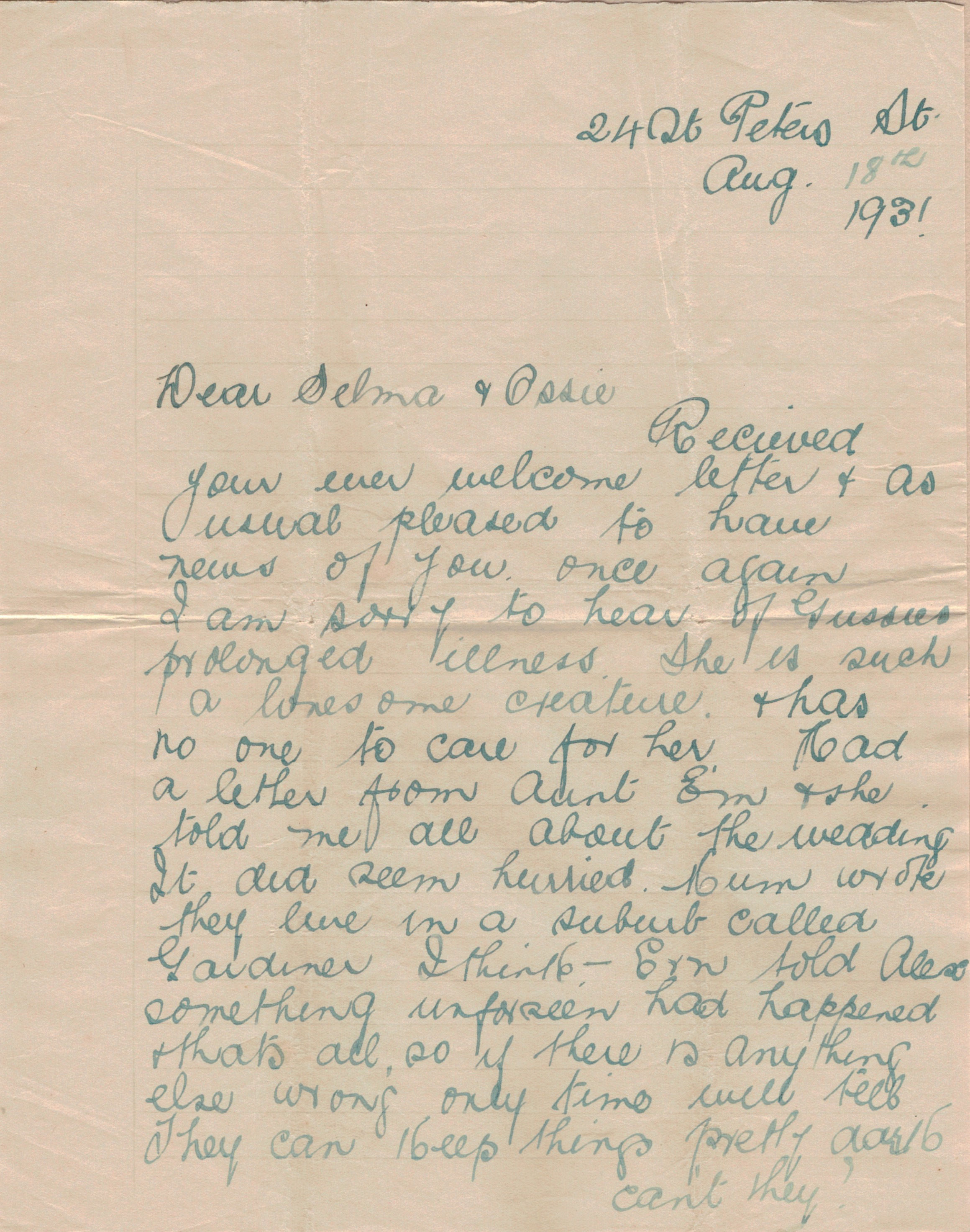 Letter from Bertha Polglase (Reinecke) to Ossie and Selma Schache (Adler), Ailsa via Warracknabeal, Vic., 1931 [Tess Hausler (Schache)] Letter from Bertha Polglase (Reinecke) to Selma Schache (Adler), Vic.,1961.Letter from Bertha Polglase (Reinecke) to Selma Schache (Adler), Vic.,date unknown.