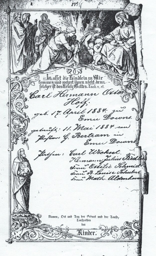 Otto Hoff’s entry in the Hoff family Bible [Naomi Hoff].