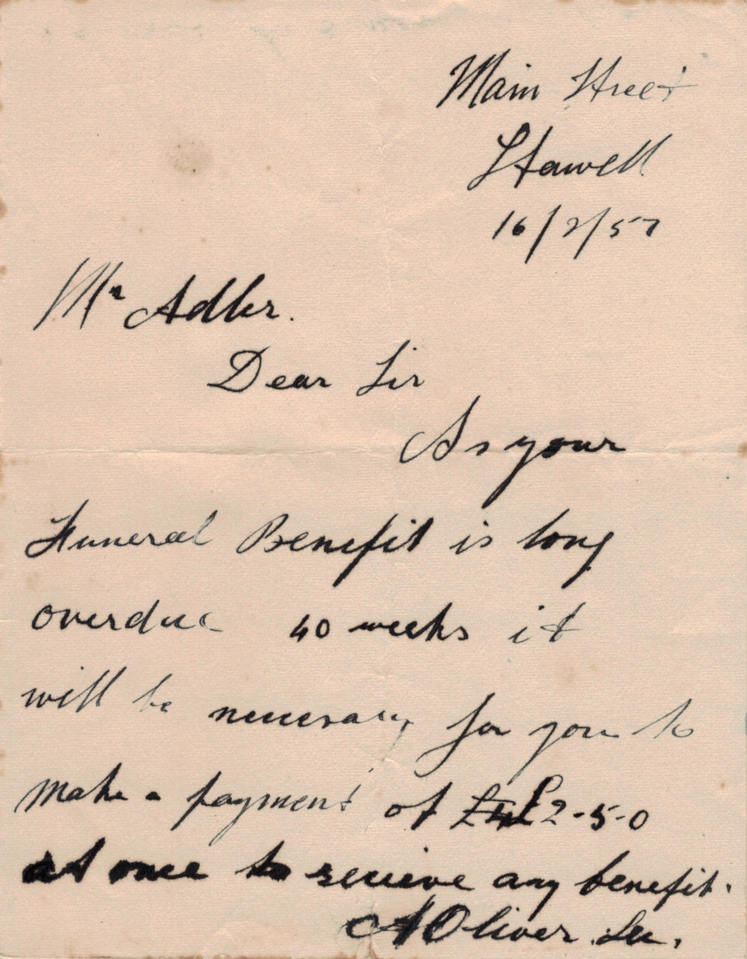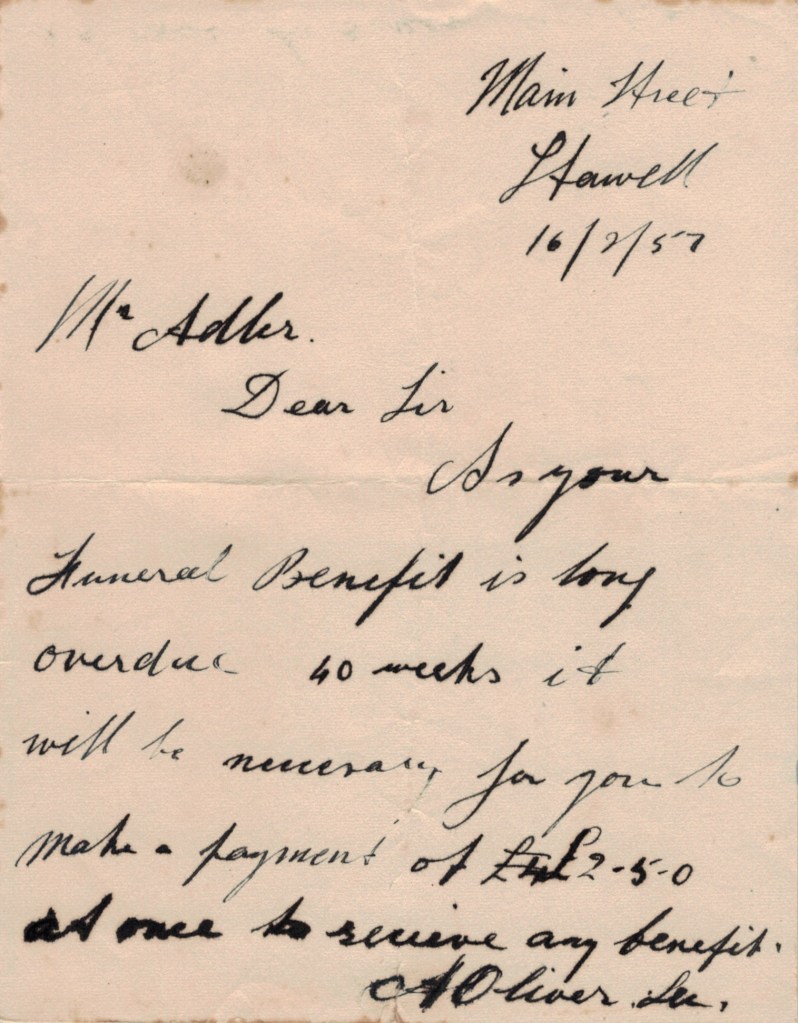Documents and Memorabilia (1.8.2 ADLER) Inscription in the devotional book above. Second inscription in the devotional book above. Letter to Henry Adler concerning funeral benefits insurance, February 1957.