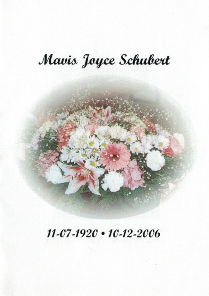 Funeral notice for Mavis Schubert (Willy), December 2006.