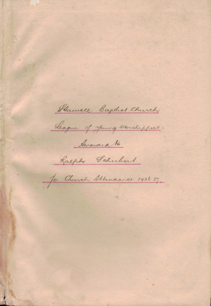 Frontispiece of book presented to Ralph Schubert, 1937.