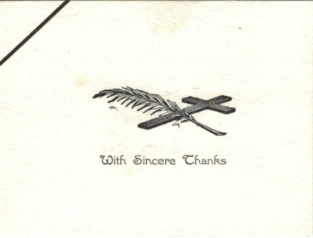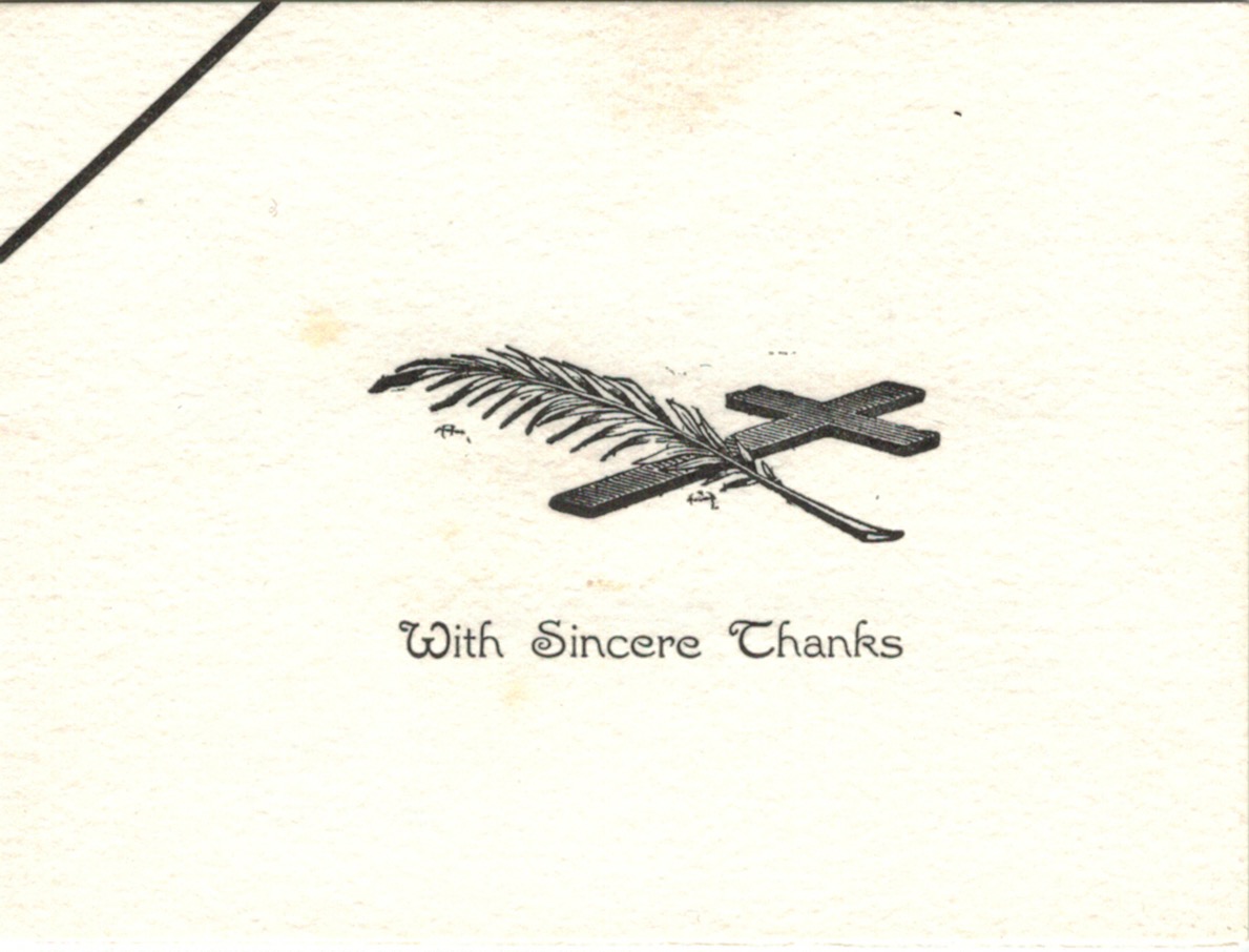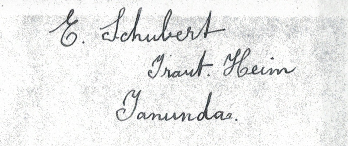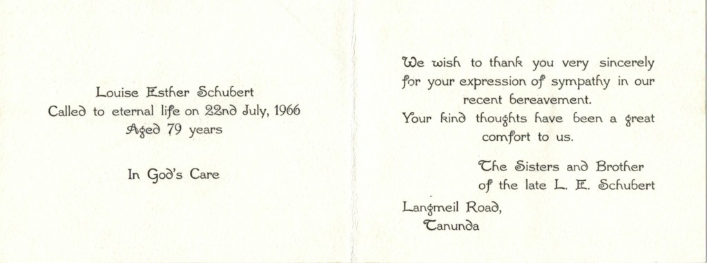 Documents and Memorabilia (1.8.8. SCHUBERT) Book belonging to Esther Schubert, frontispiece and inscription. Bereavement thanks card.