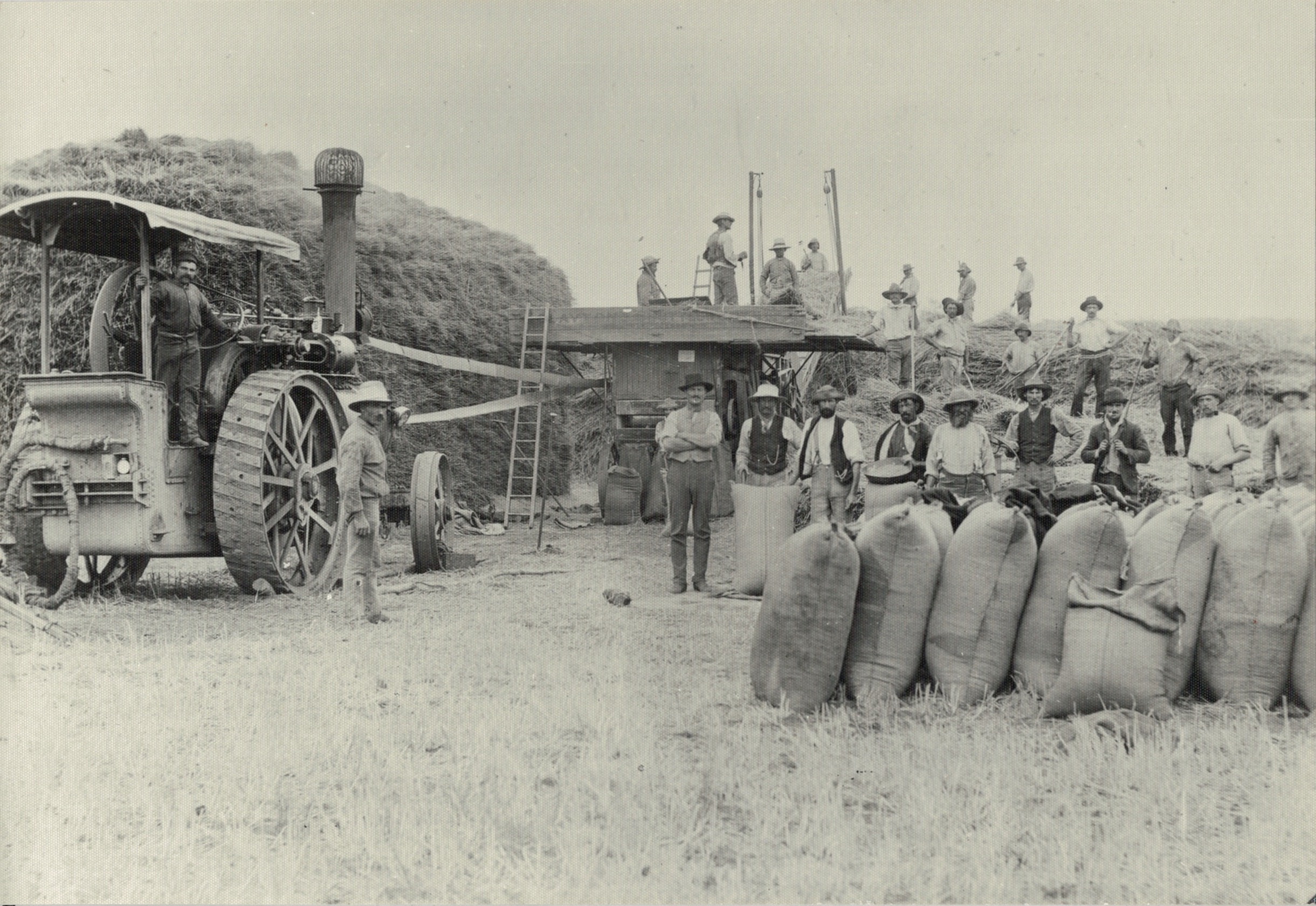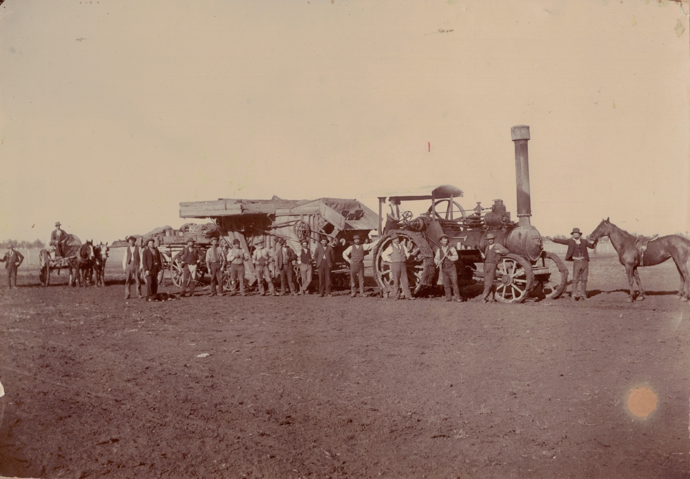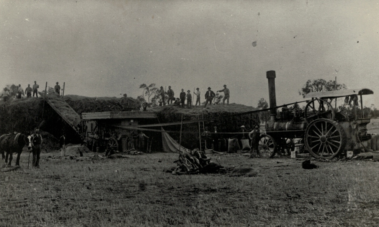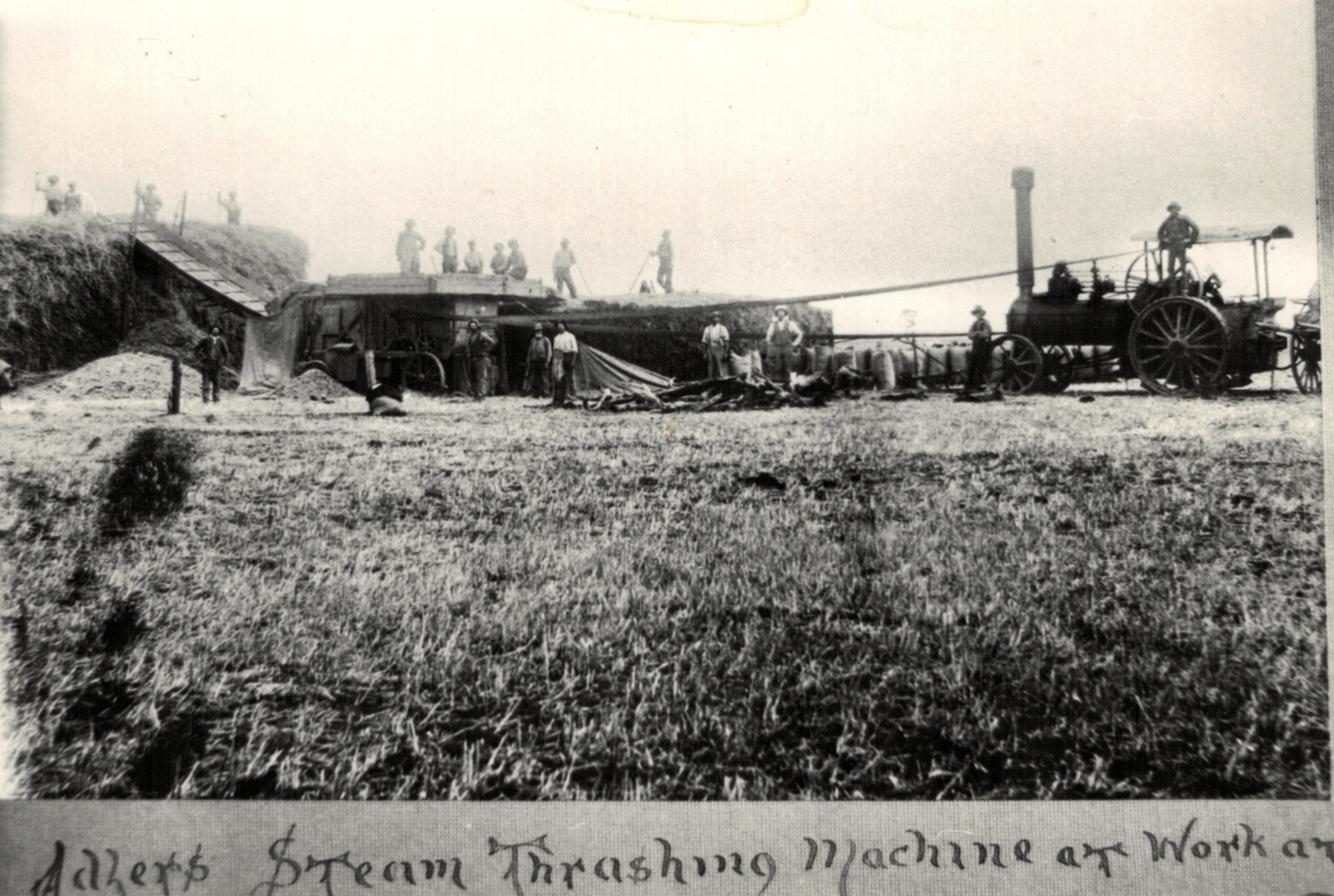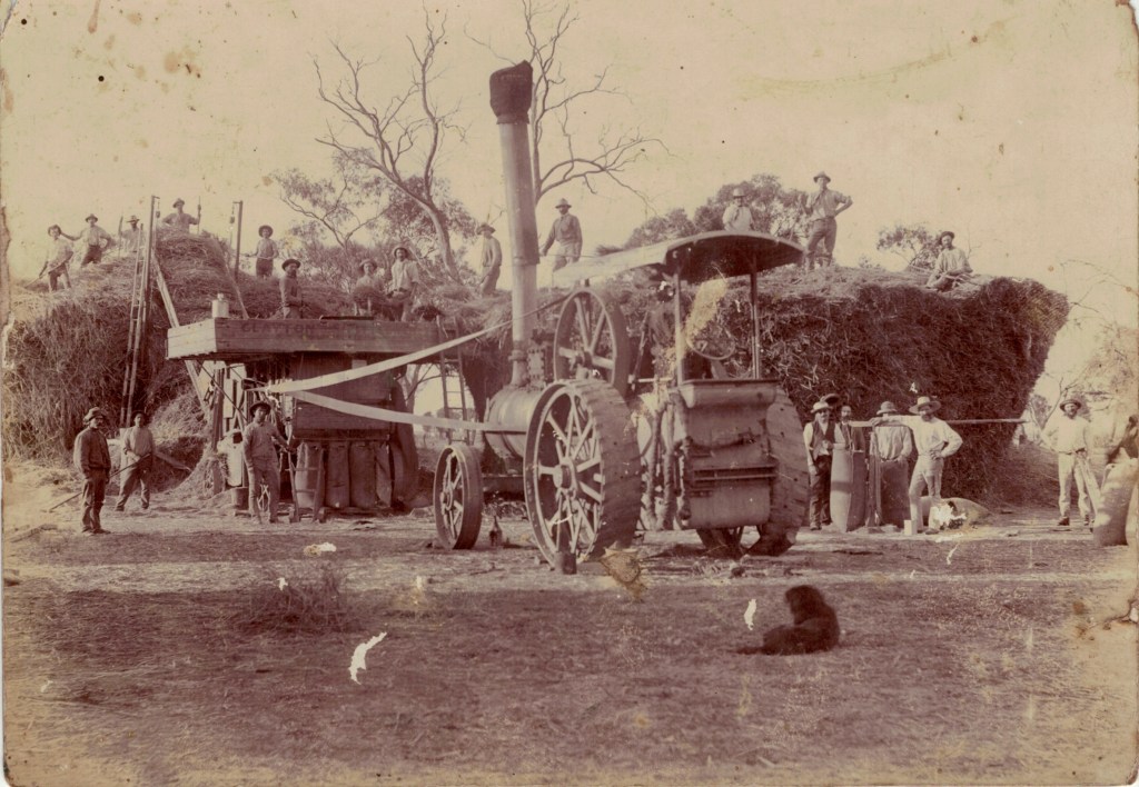 Believed to be Ned Adler’s steam-driven threshing plant [Tess Hausler (Schache)].