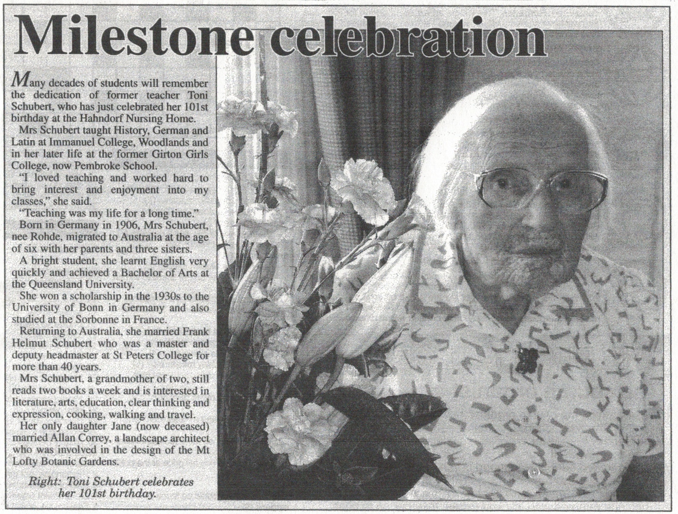 Published References (1.8.4.4 SCHUBERT) “Advertiser” (Adelaide, SA), Saturday 30 November 2002 [David Schubert]. Source unknown, 2007 [David Schubert].