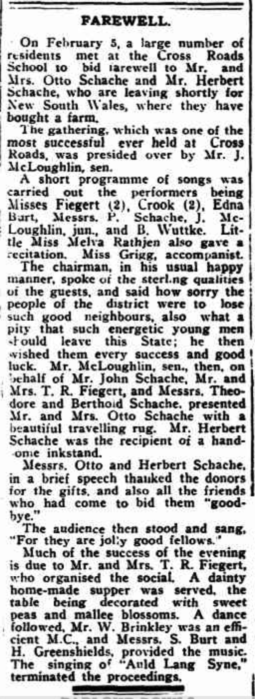 Published References (1.7.5.2 SCHACHE) “Mount Barker and Onkaparinga and Gumeracha Advertiser (SA), Friday 19 February 1926, page 1 [Trove].