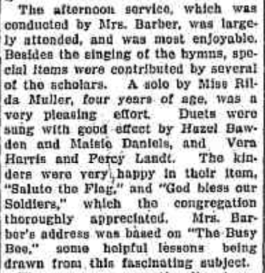 Press references (1.1.1.4 Bawden) “Warracknabeal Herald” (Vic.), Friday 2 August 1929. “Warracknabeal Herald” (Vic.), Tuesday 5 November 1918, page 5 (extract from article “Methodist Sunday School/ Anniversary Celebration” [Trove]. “Age” (Melbourne, Vic.), Saturday 1 August 1931, page 4 (“In Memoriam”) [Trove]. “Warracknabeal Herald” (Vic.), Tuesday 2 August 1932, page 2. “Warracknabeal Herald” (Vic.), Centenary Edition, Friday 2 August 1985, page 36 (reproduced from the “Warracknabeal Herald”, Friday 2 August 1935).
