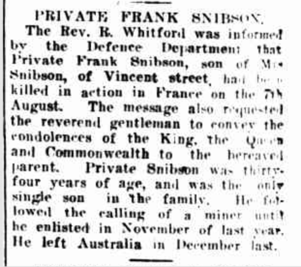 “Stawell News and Pleasant Creek Chronicle” (Vic.), Thursday 21 September 1916, page 3 [Trove].