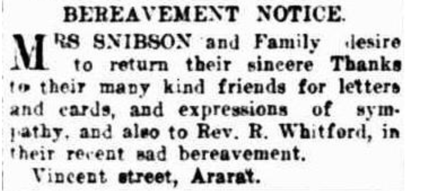 “Ararat Advertiser” (Vic.), Saturday 23 September 1916, page 2 [Trove].“Ararat Advertiser” (Vic.), Saturday 30 September 1916, page 2 [Trove].