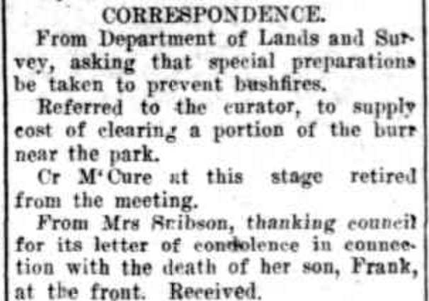 “Ararat Adveiser and Chronicle for the Stawell and Wimmera Districts” (Vic.), Thursday 7 December 1916, page 2 (extract from article “Ararat Borough Council”) [Trove].